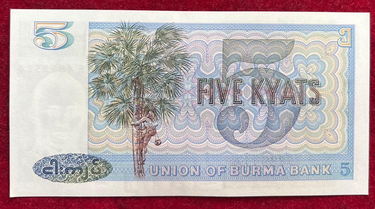 Myanmar 5 Kyats GEM UNC RARE NOTE