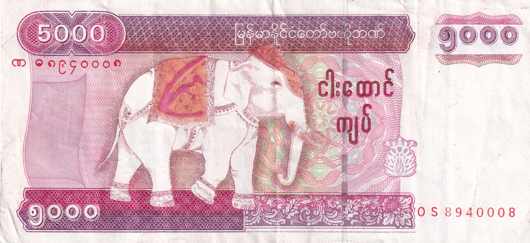 Myanmar 5000 Kyats Rare Lowest Price Note #B2