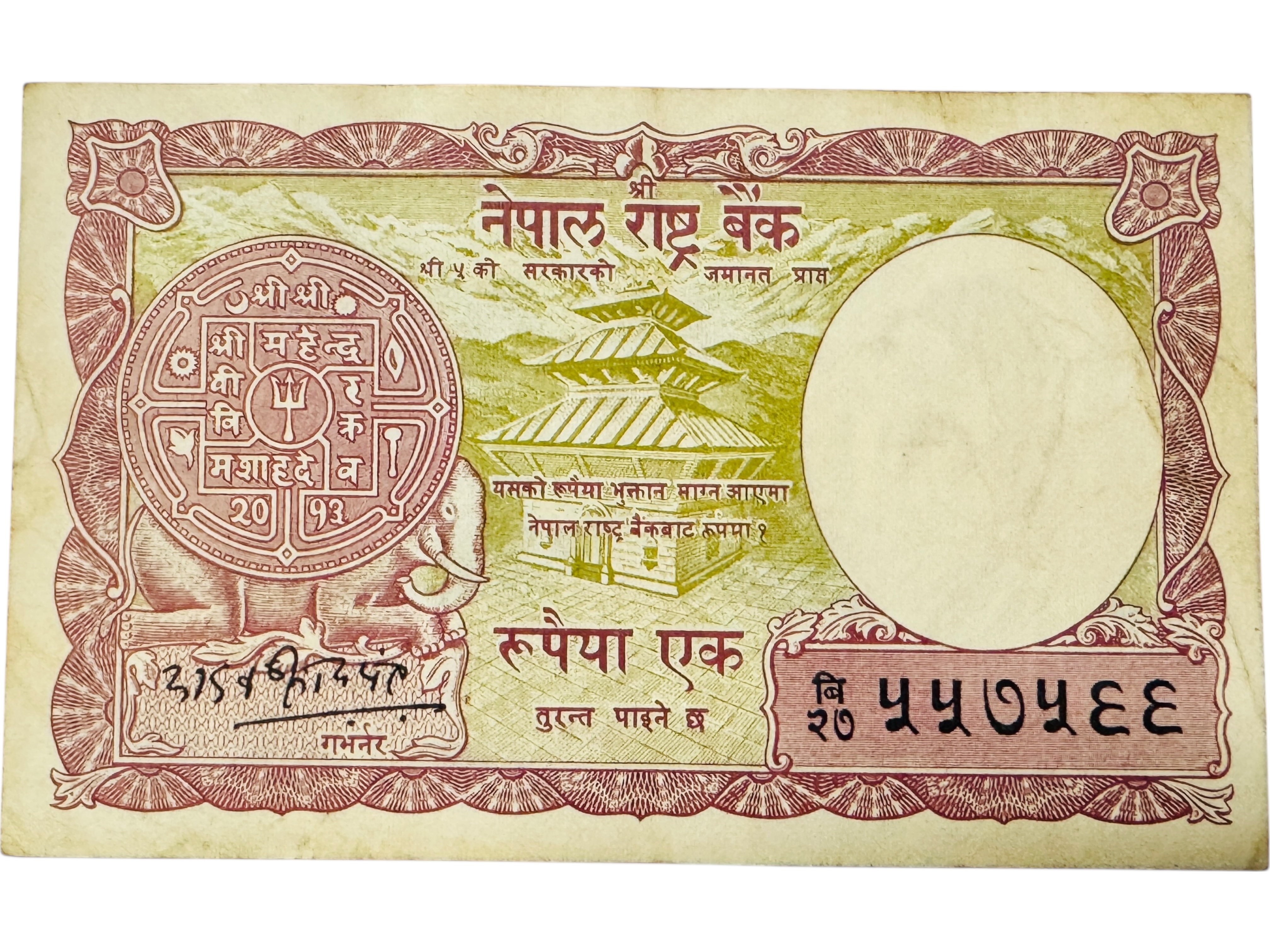 Nepal 1 Mohru P1 1968 Issue Banknote Elephant Hindu Temple Money Banknote Ultra Unique and Rare