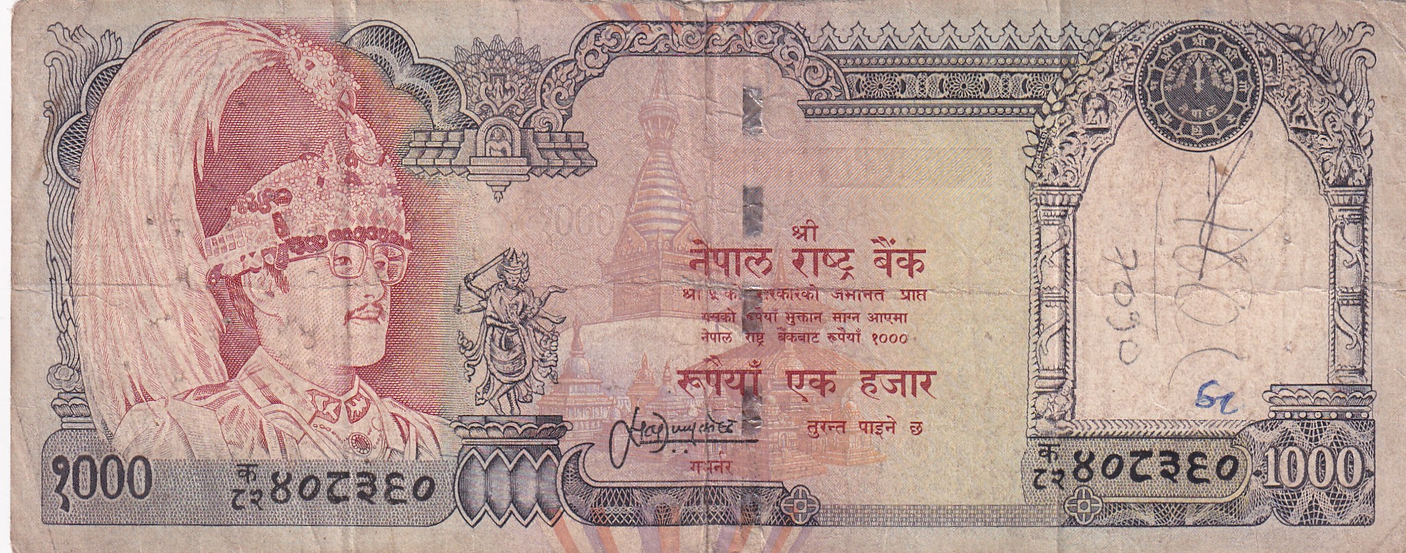 Nepal 1000 Rupees – Birendra Bir Bikram RARE NOTE #B-2