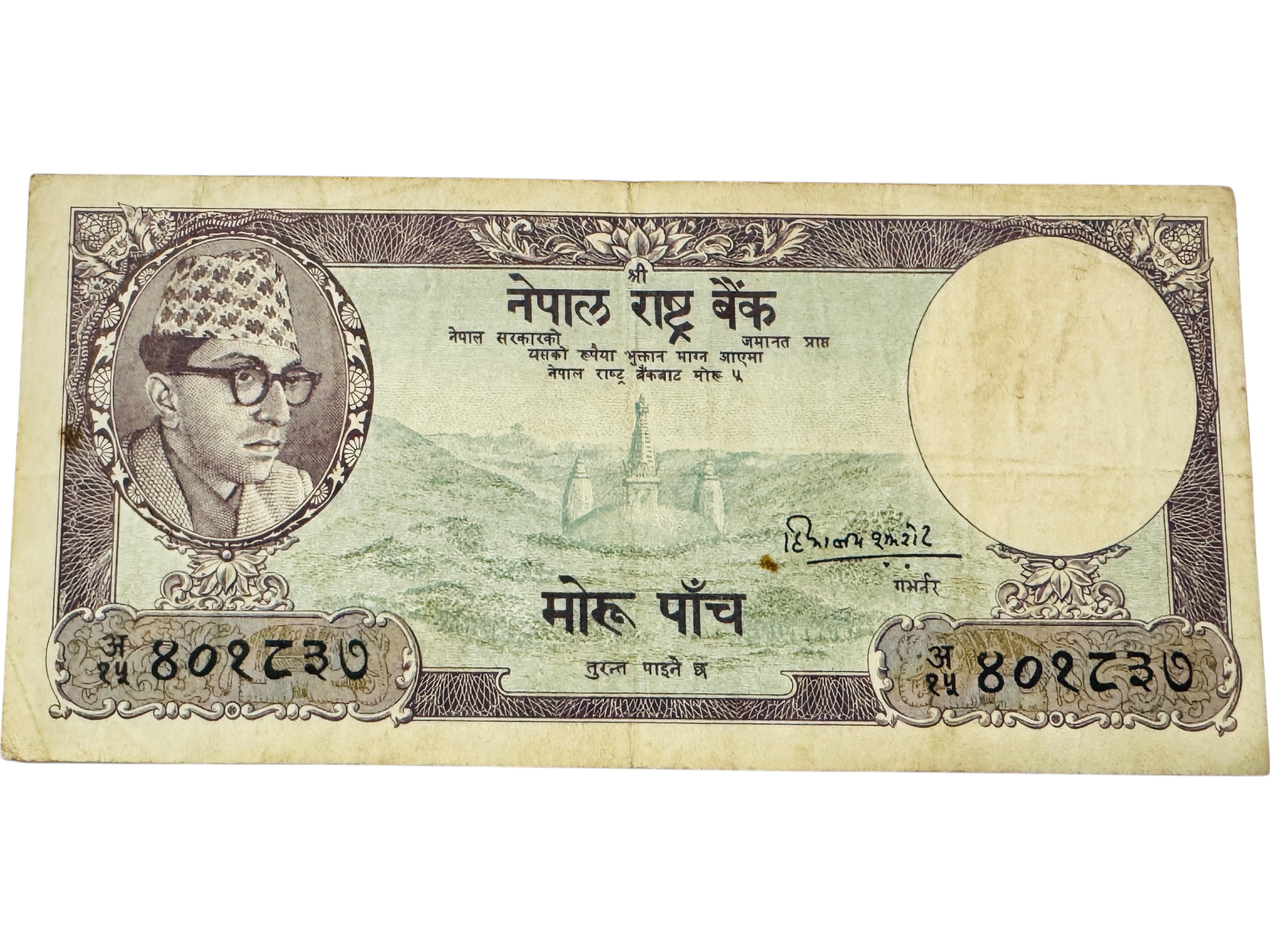 Nepal 5 Mohru 1955 Banknote Issue Unique and Rare