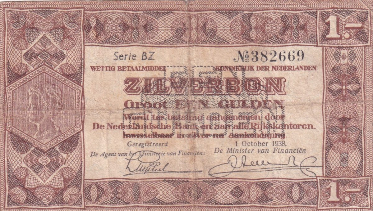 🏷️ Rare 1938 Netherlands 1 Gulden Silver Voucher
