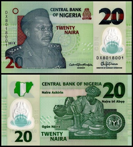Nigeria 20 Naira polymer banknote from 2018 features Murtala Ramat Muhammad world banknote UNC Unique and Rare