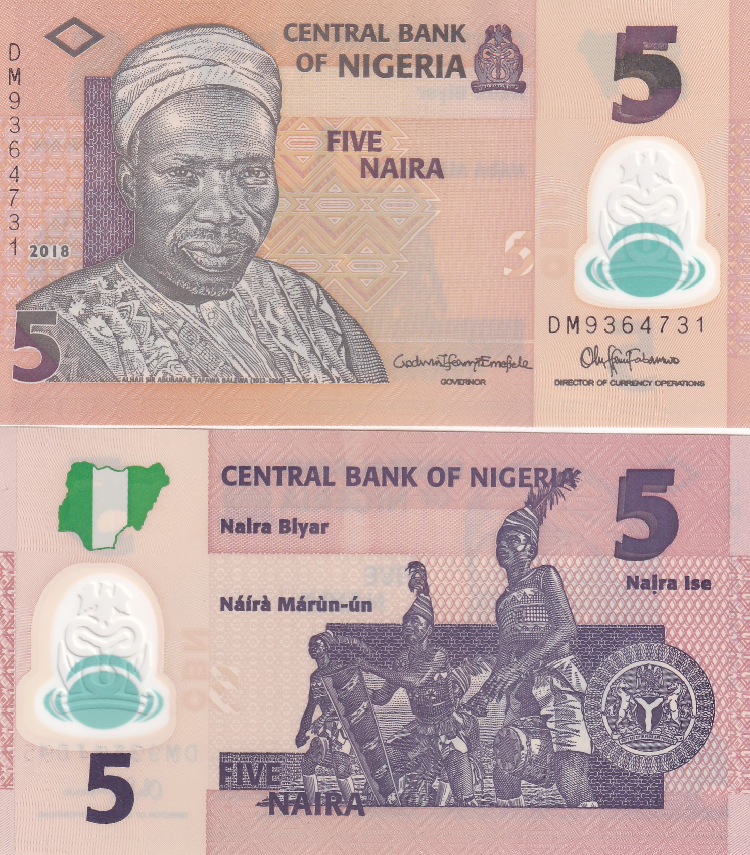 NIGERIA 5 NAIRA GEM UNC RARE POLYMAR NOTE