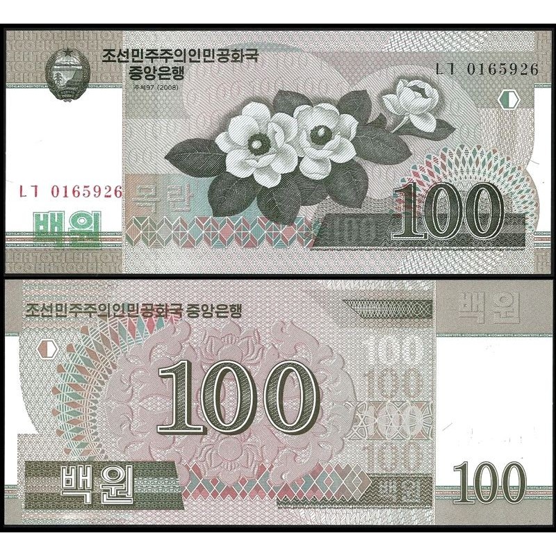 North Korea 100 Won Banknote Year 2008 UNC Unique and Rare