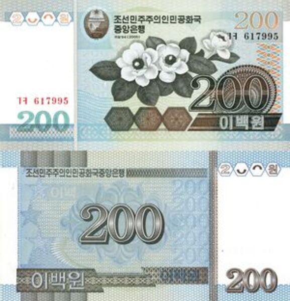 North Korea 200 Flower Won World Banknote Issued Unique and Rare