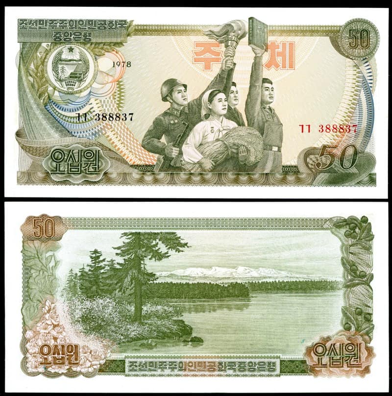 North Korea 50 Won World Banknote Issued in 1978 Unique and Rare