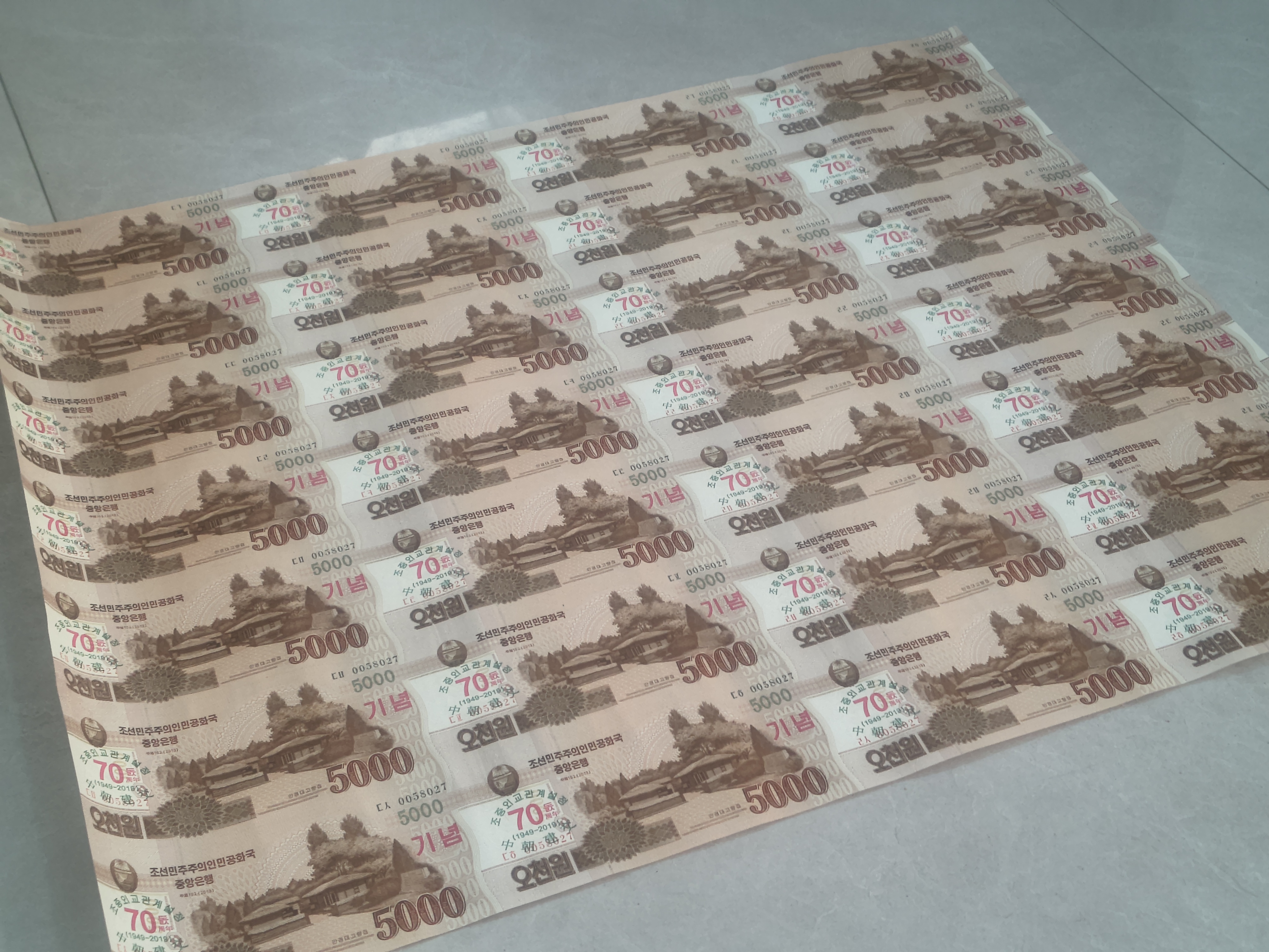 NORTH KOREA 5000 WON – RELATION BETWEEN CHINA AND NORTH KOREA ( 28 NOTE ) UNCUT SHEET
