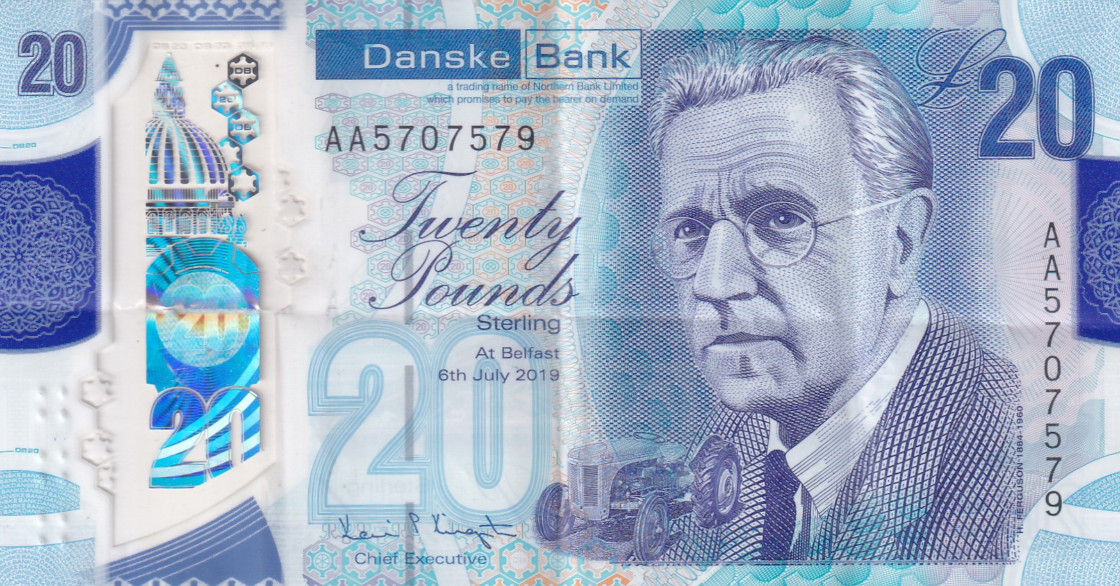 Northern Ireland 20 Pounds Danske Bank rare Polymer note #B-2