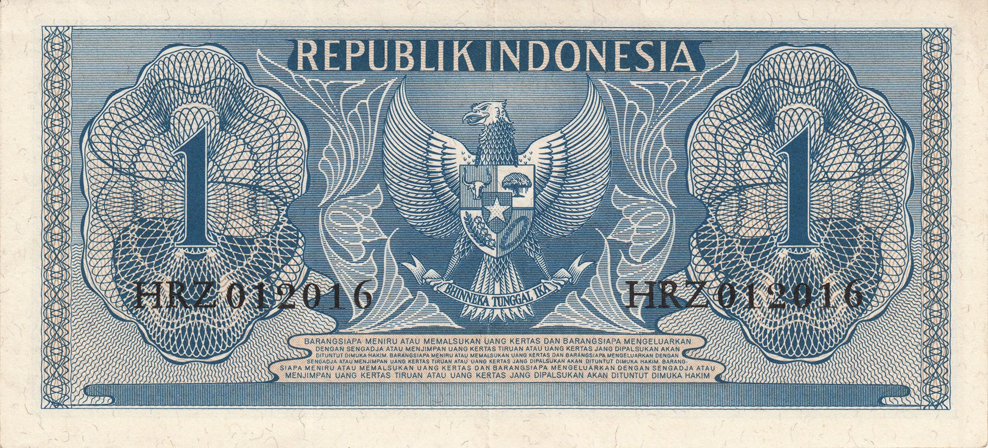 Old 1 Rupiah of Indonesia (AD 1956) with Portrait Javanese girl Rare