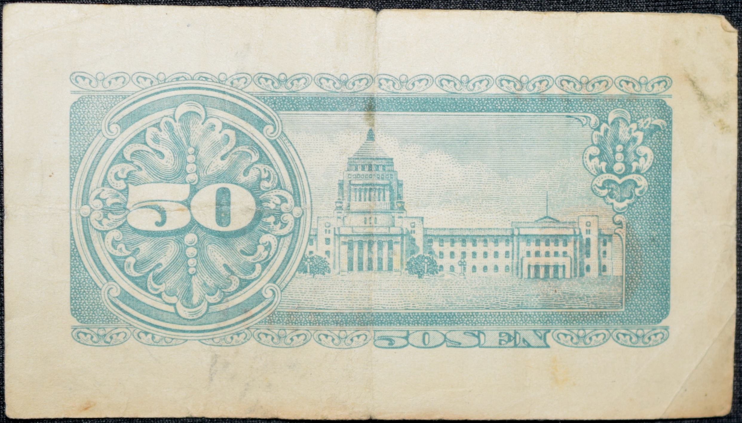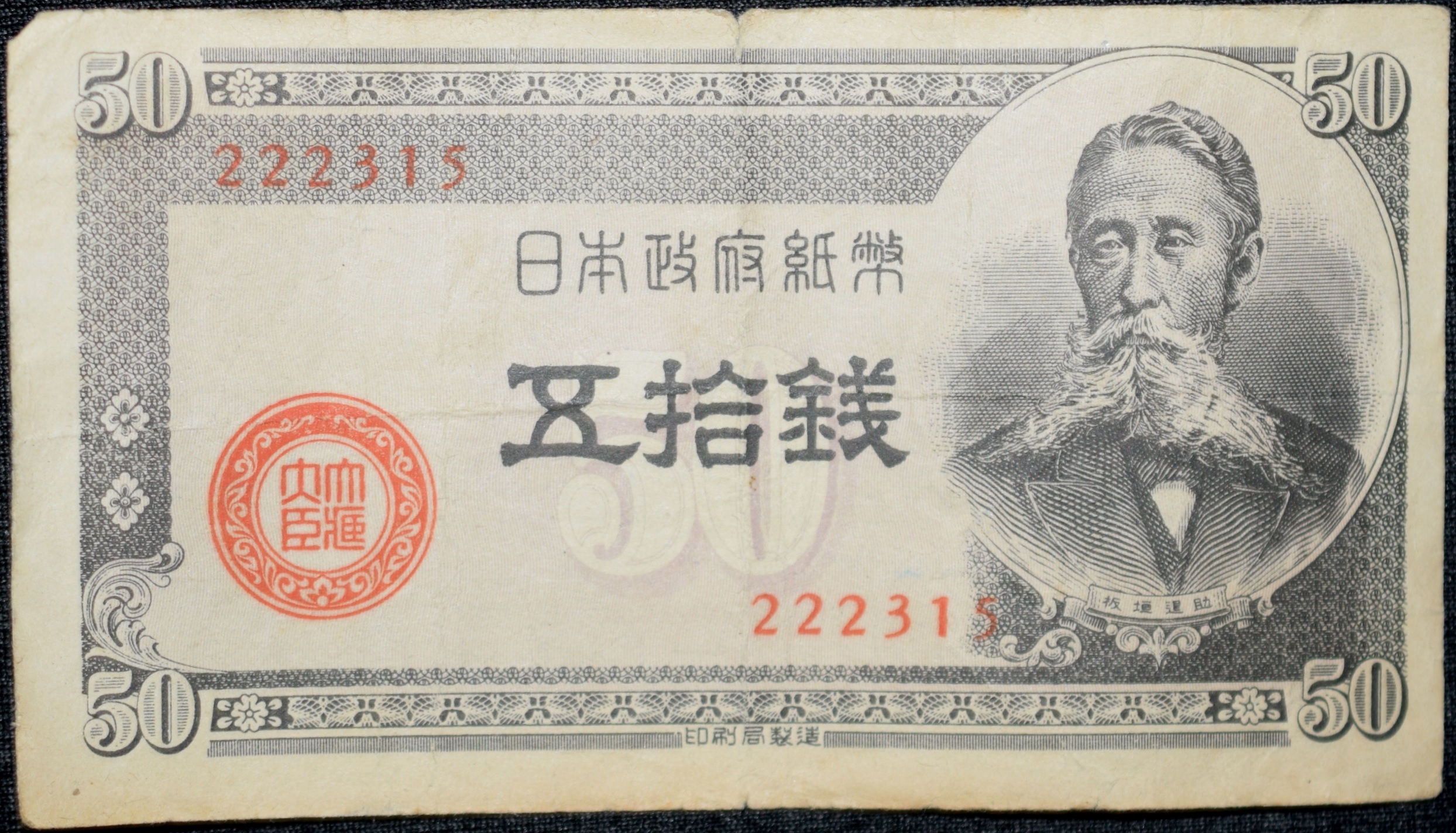 Old 50 Sen of Japan Country (AD 1948) Taisuke Itagaki/Parliament building Rare