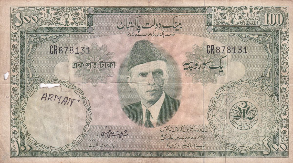 Pakistan 100 Rupees Big size Old Issue rare bank note Lowest Condition
