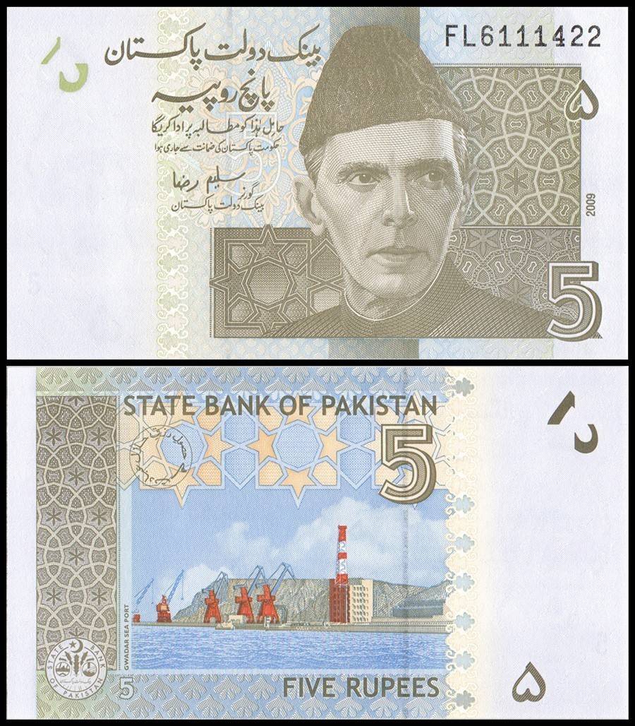 Pakistan 5 Rupees Banknote 2009 P53b UNC Unique and Rare