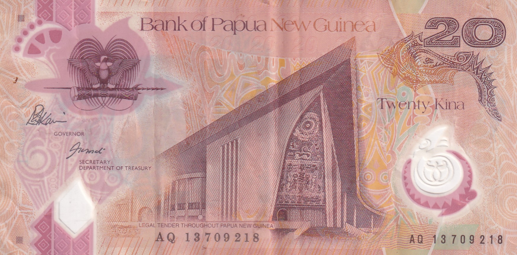 Papua New Guinea 20 Kina reduced size Rare World Polymer Note #B2
