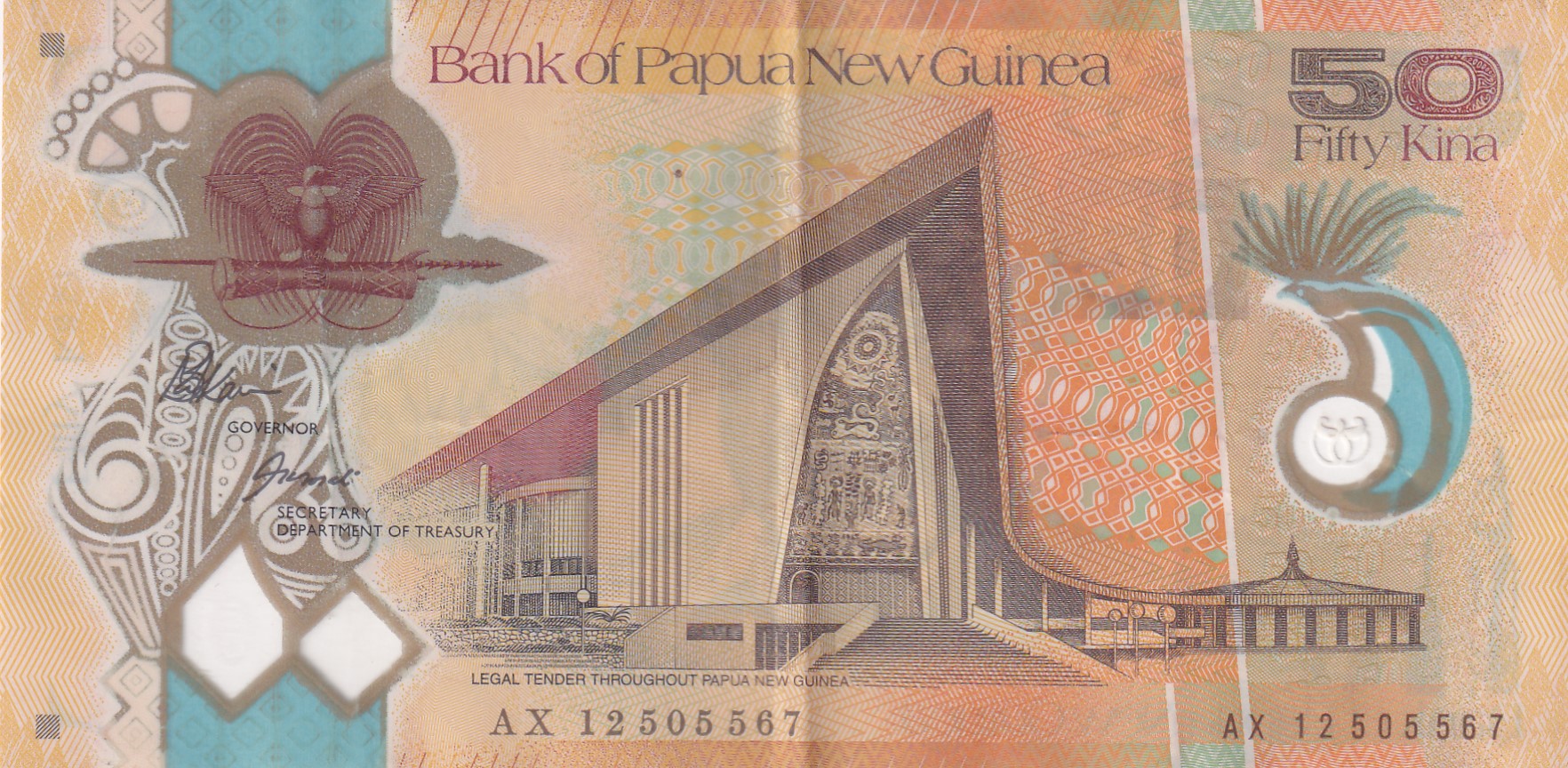 Papua New Guinea 50 Kina POLYMER Rare Foreign Note #B2