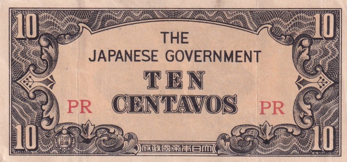 Philippines 10 Centavos 1942 Japanese Government rare lowest price Note