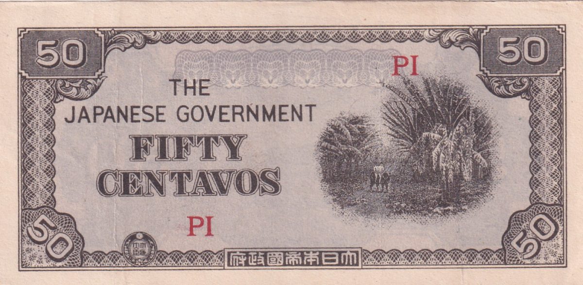 Philippines 50 Centavos 1942 Japanese Government rare lowest price Note