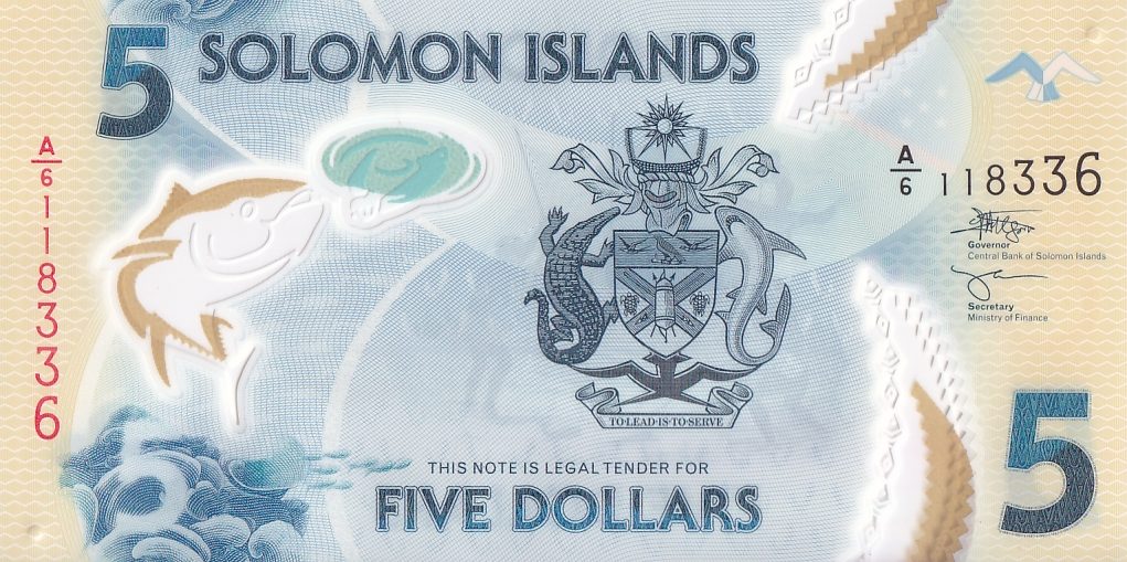 Polymer Note of Solomon Islands 5 Dollars Unc