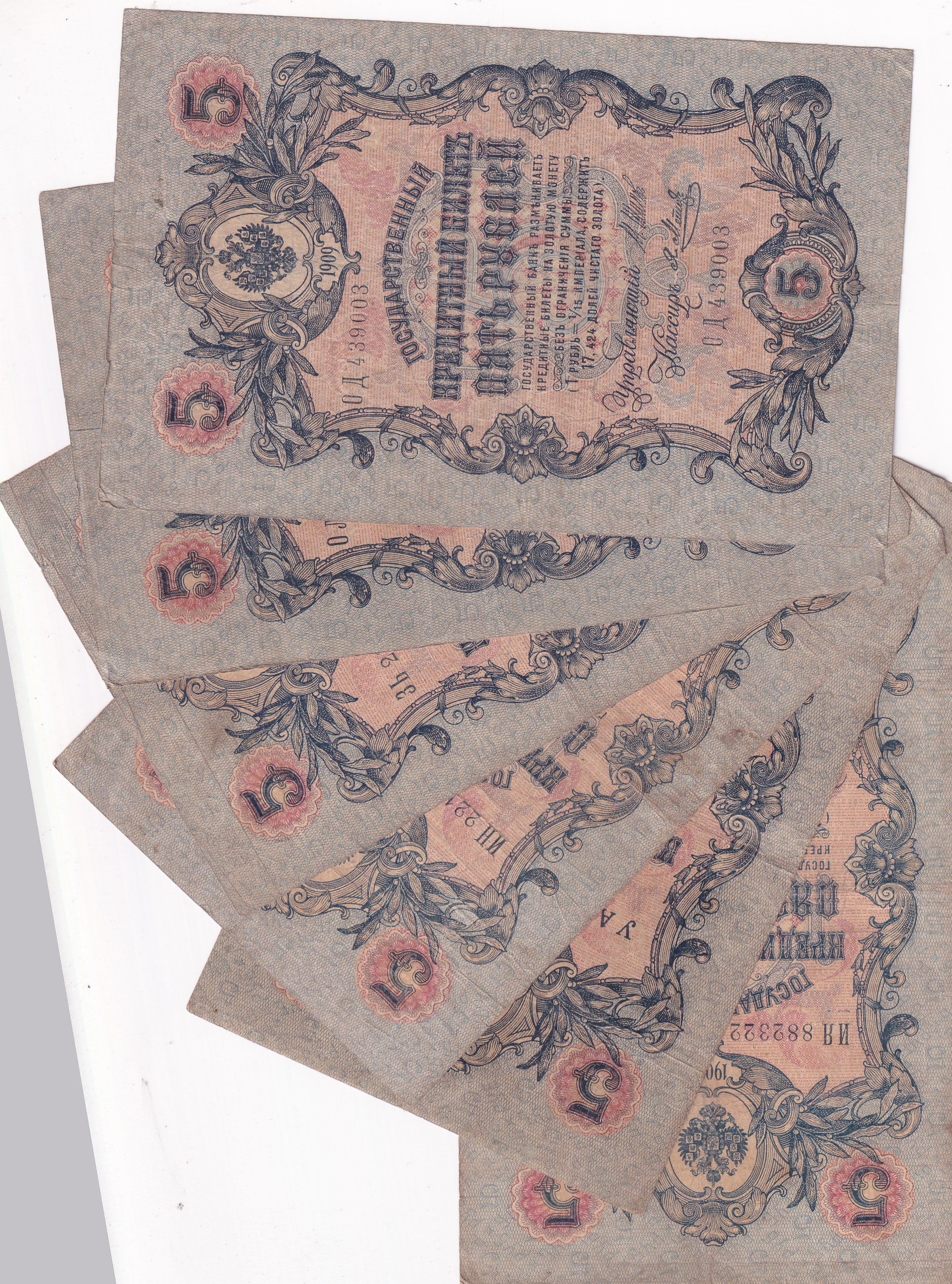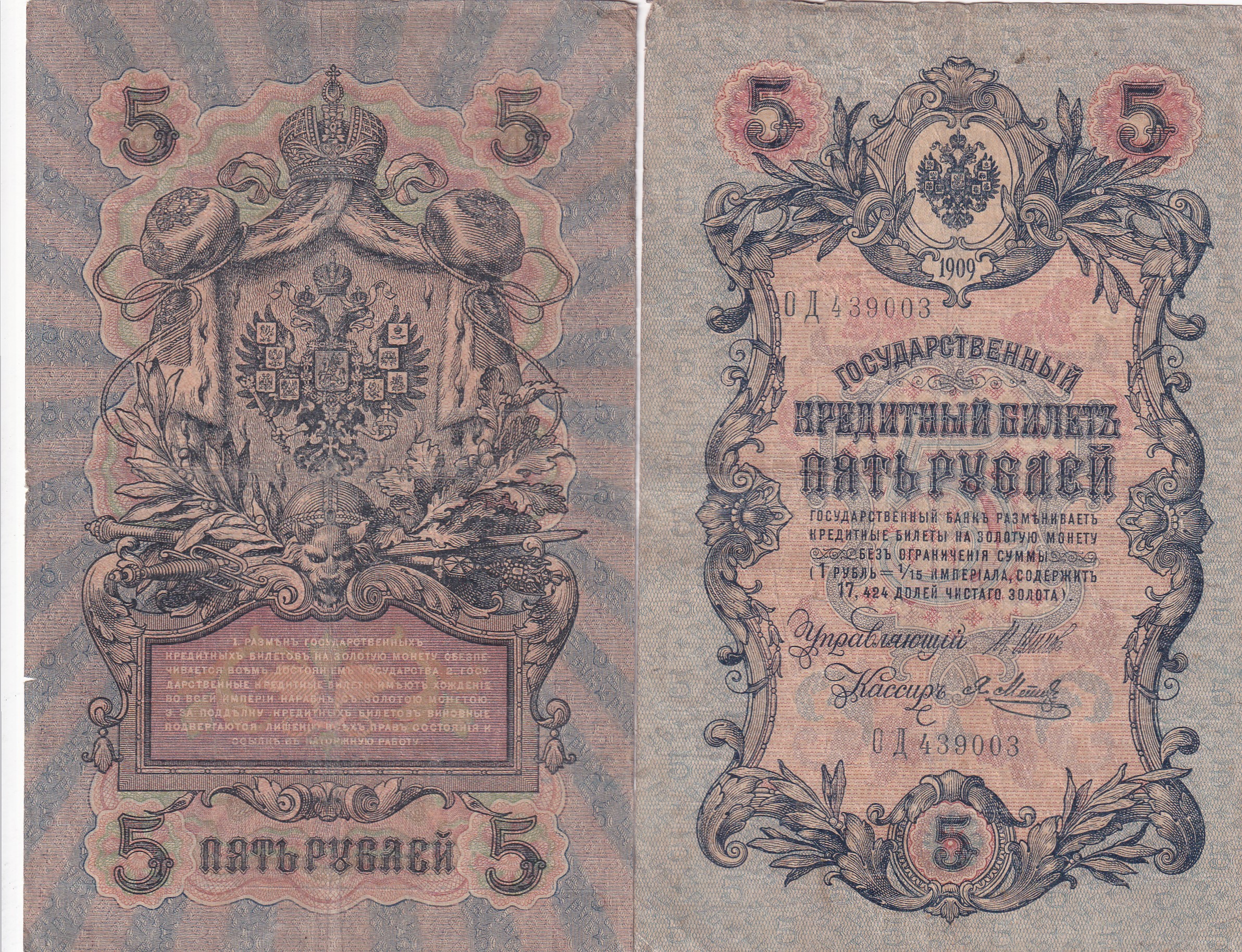 Russia 5 Rouble 1909 RARE LOWEST PRICE NOTE