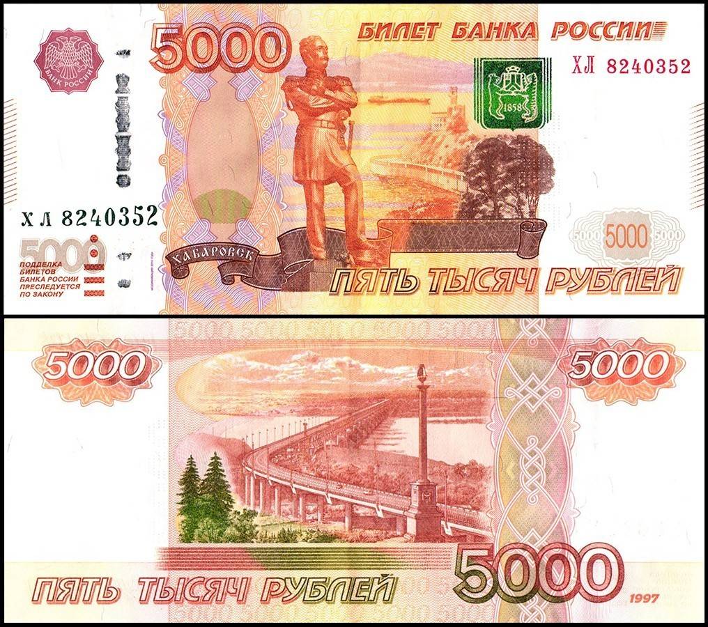 Russia 5000 Rubel Highest Denomination 1997 to 2010 Gem UNC Issue Unique and Rare