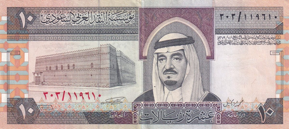 Saudi Arabia 10 Riyals – Fahd bin Abdulaziz RARE NOTE #B-2