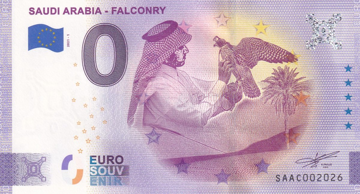 Saudi Arabia – Falconry 0 Euro Note GEM UNC Legal Tender Country Issue