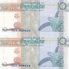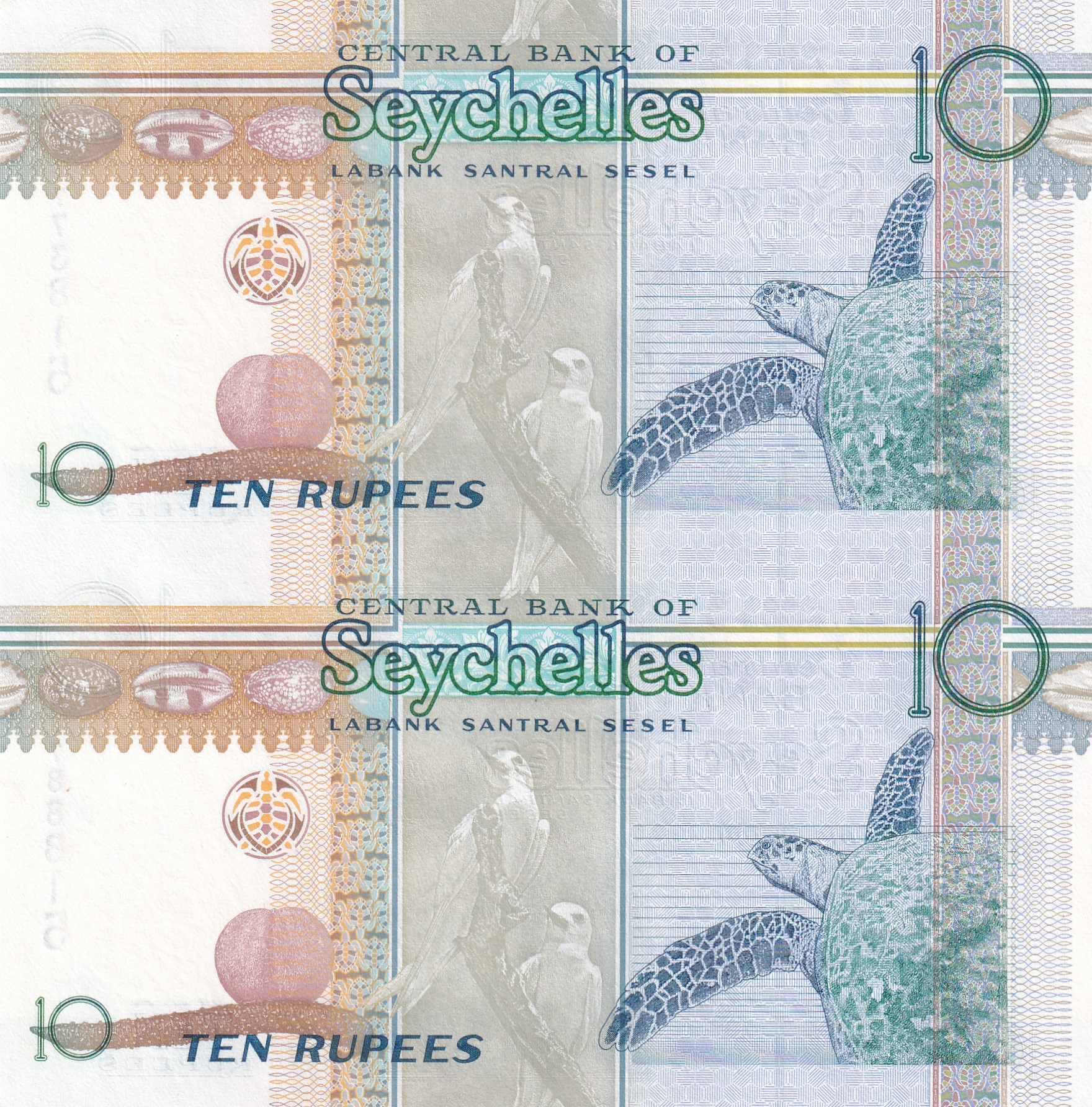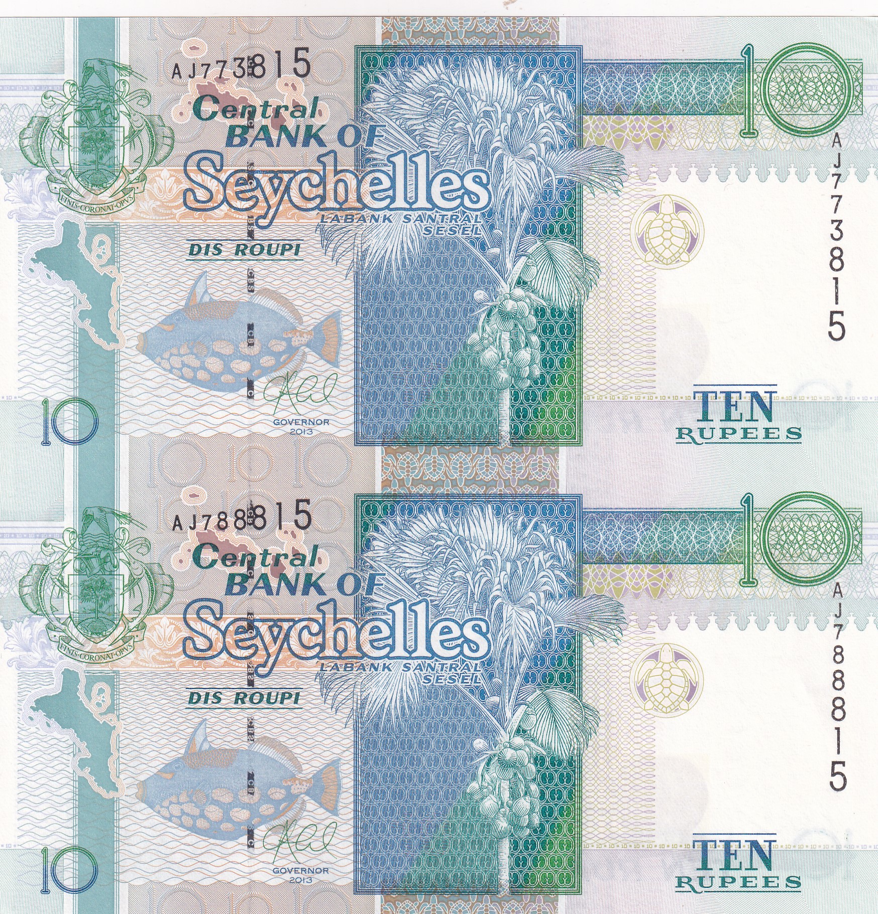 Seychelles 10 Rupees 2013 UNC (2 NOTE) UNCUT SHEET