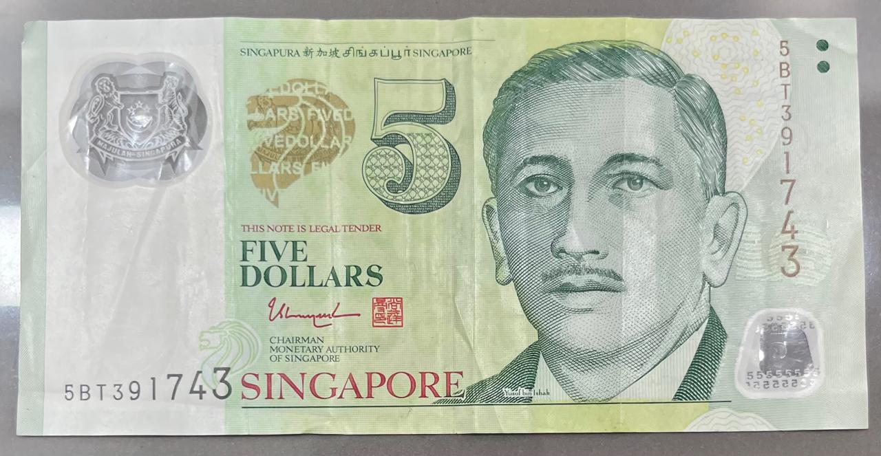 Singapore 5 Dollars polymer RARE NOTE # B-2