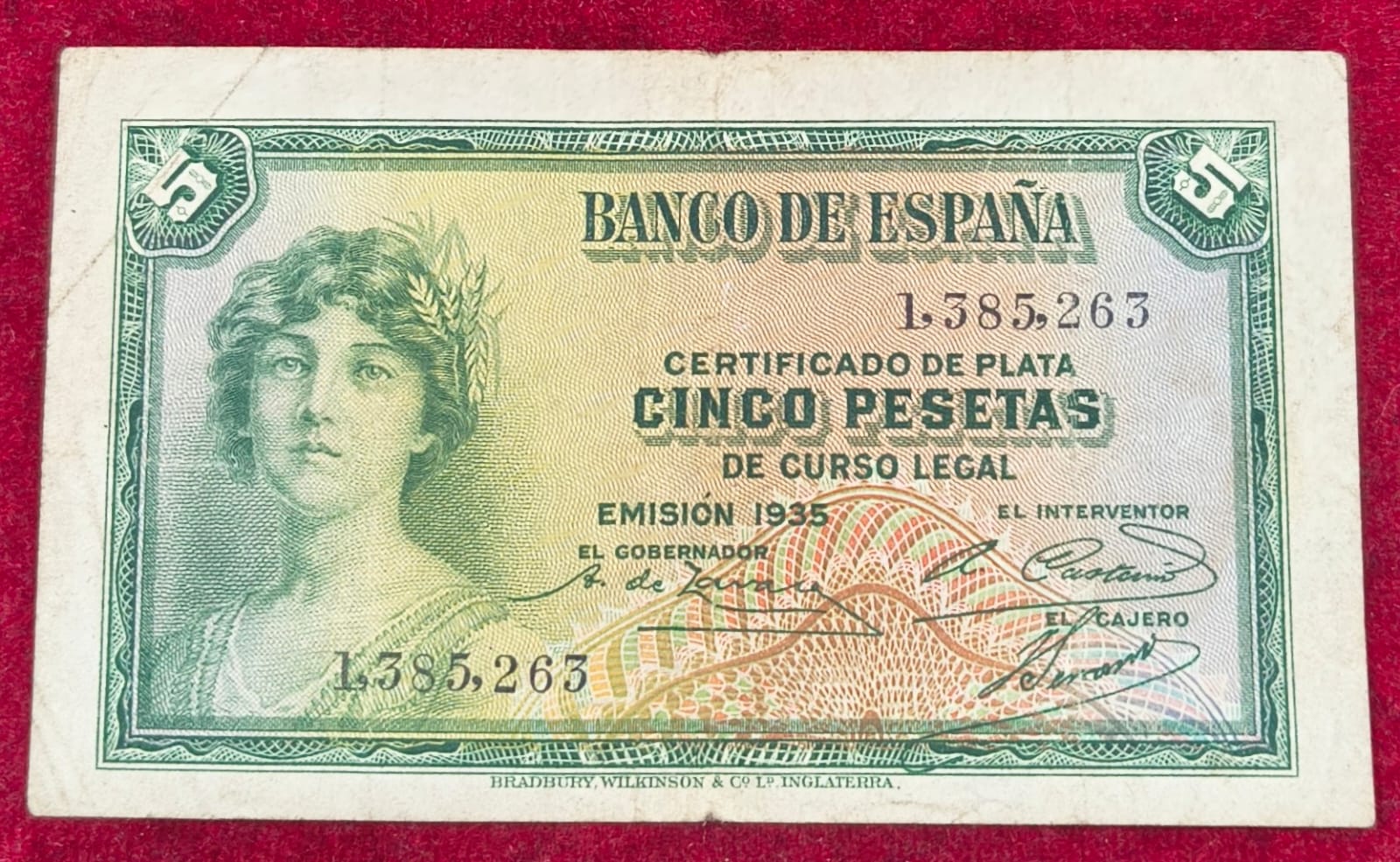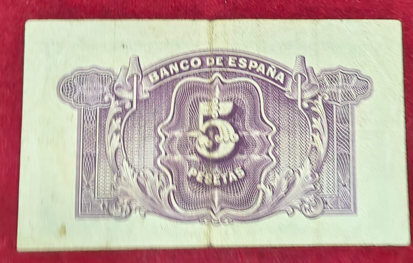 Spain 5 Pesetas Silver Certificate RARE NOTE # B-2