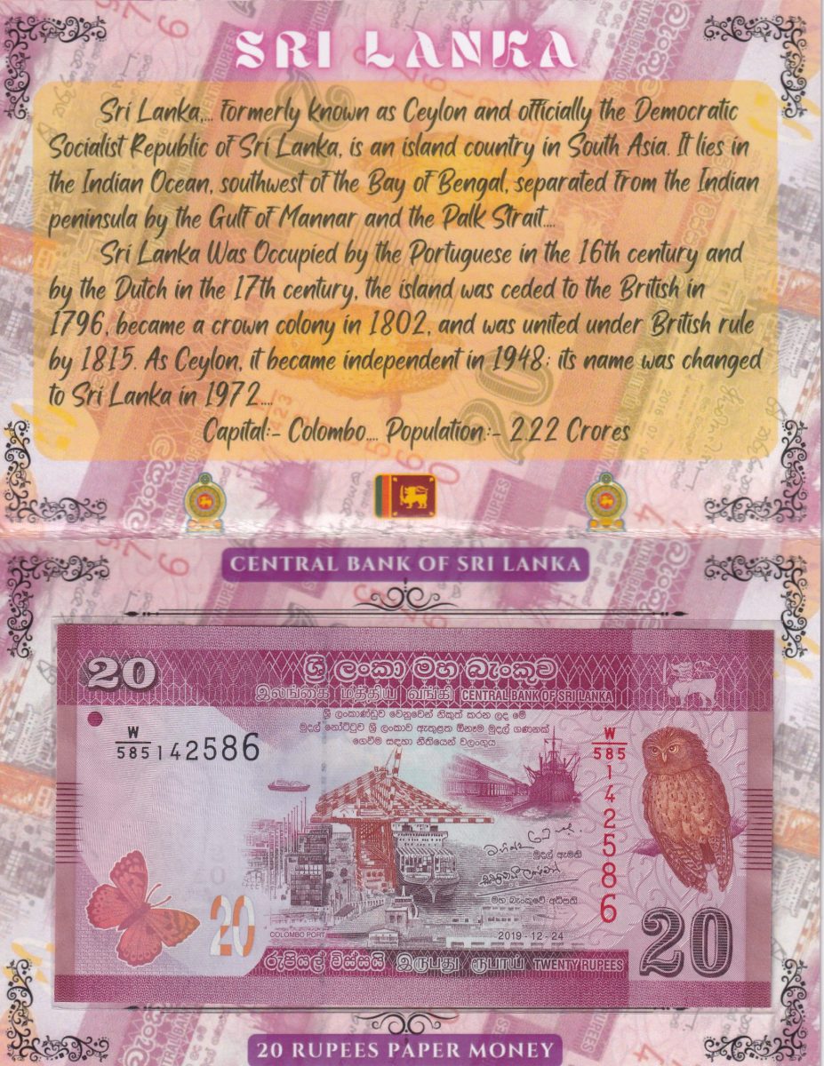 SRI LANKA 20 RUPEES UNC NOTE WITH BEAUTIFUL PACKING