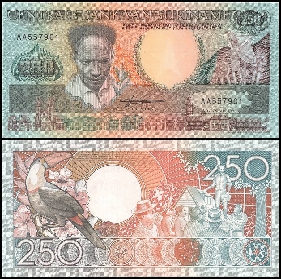 Suriname 250 Gulden World Banknote 1988 P134 UNC Unique and Rare