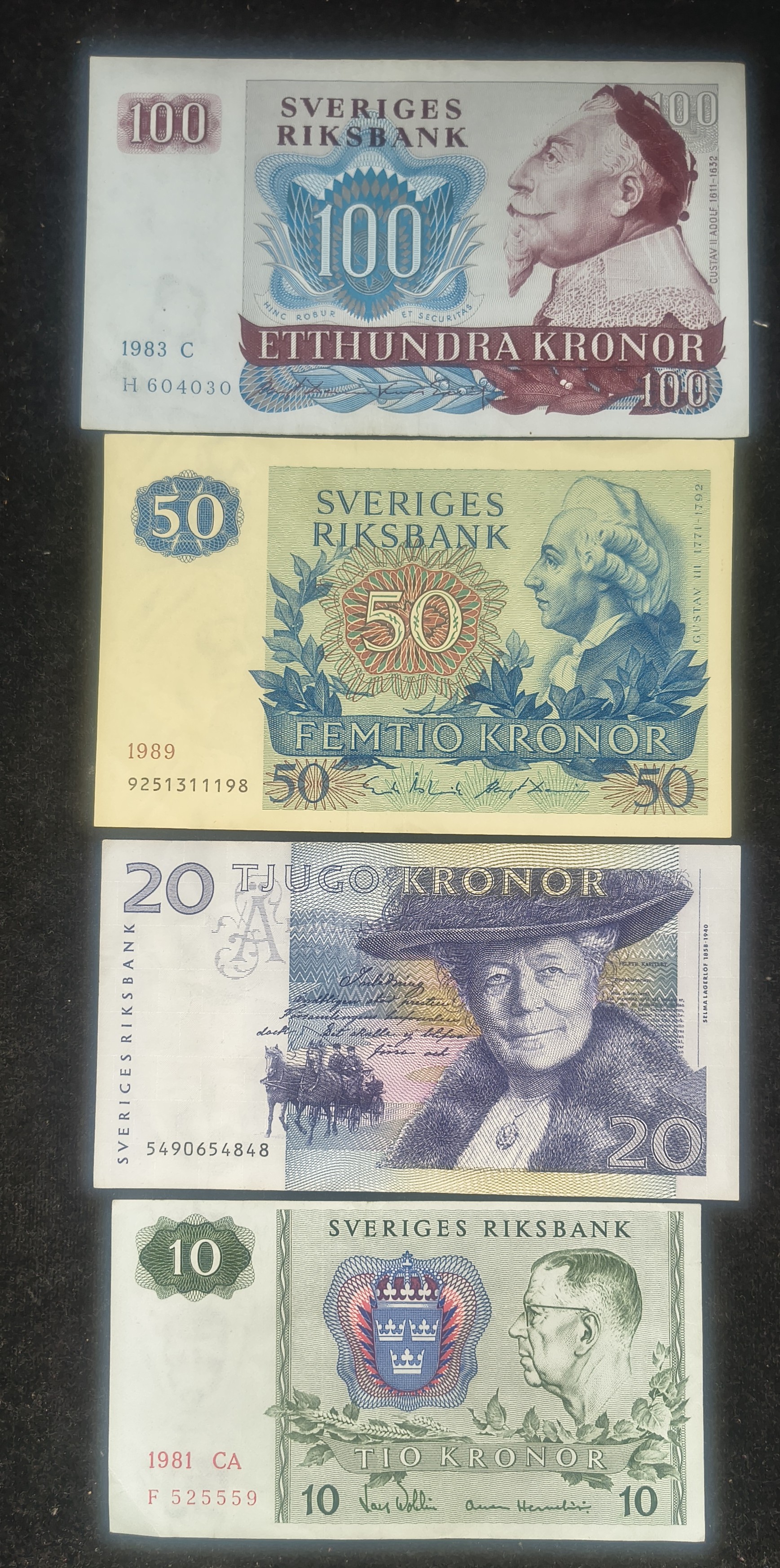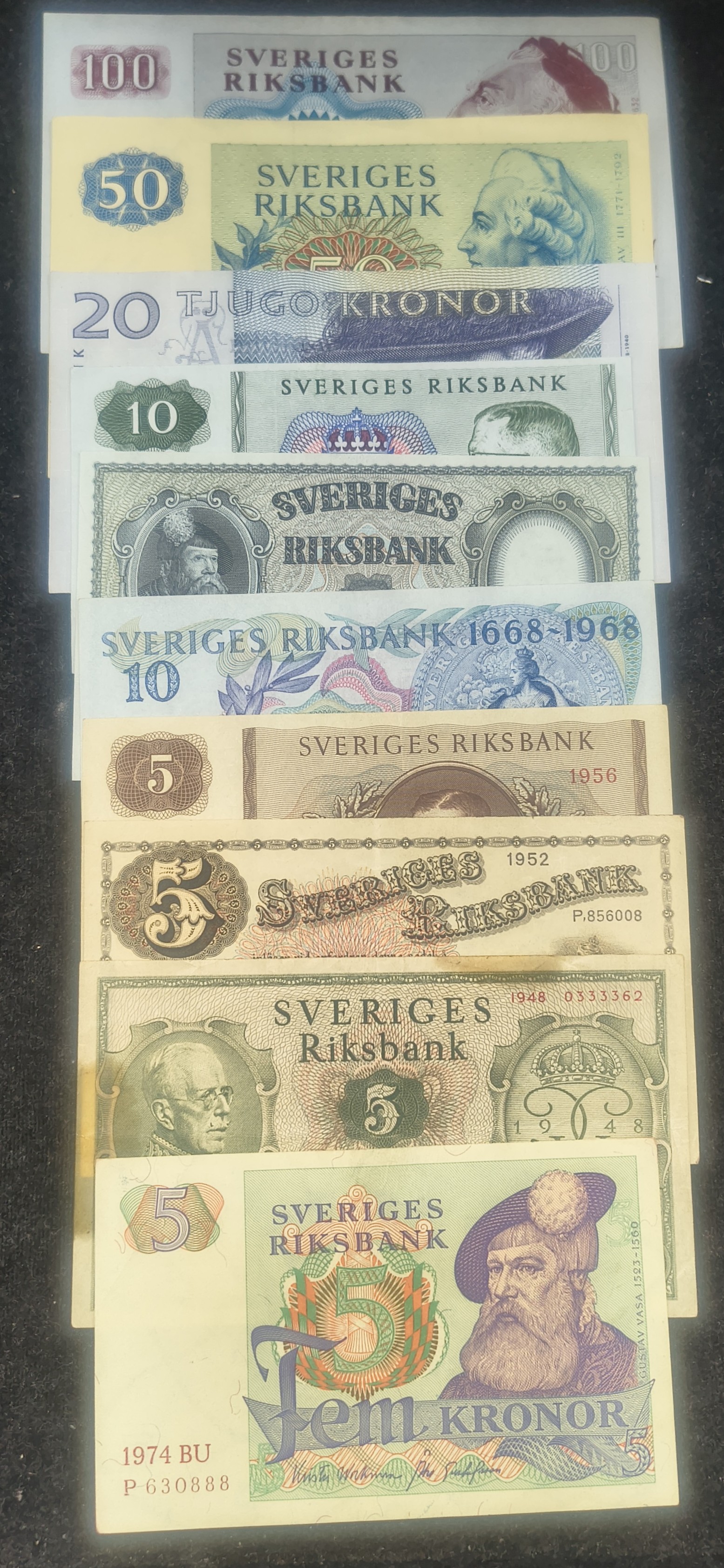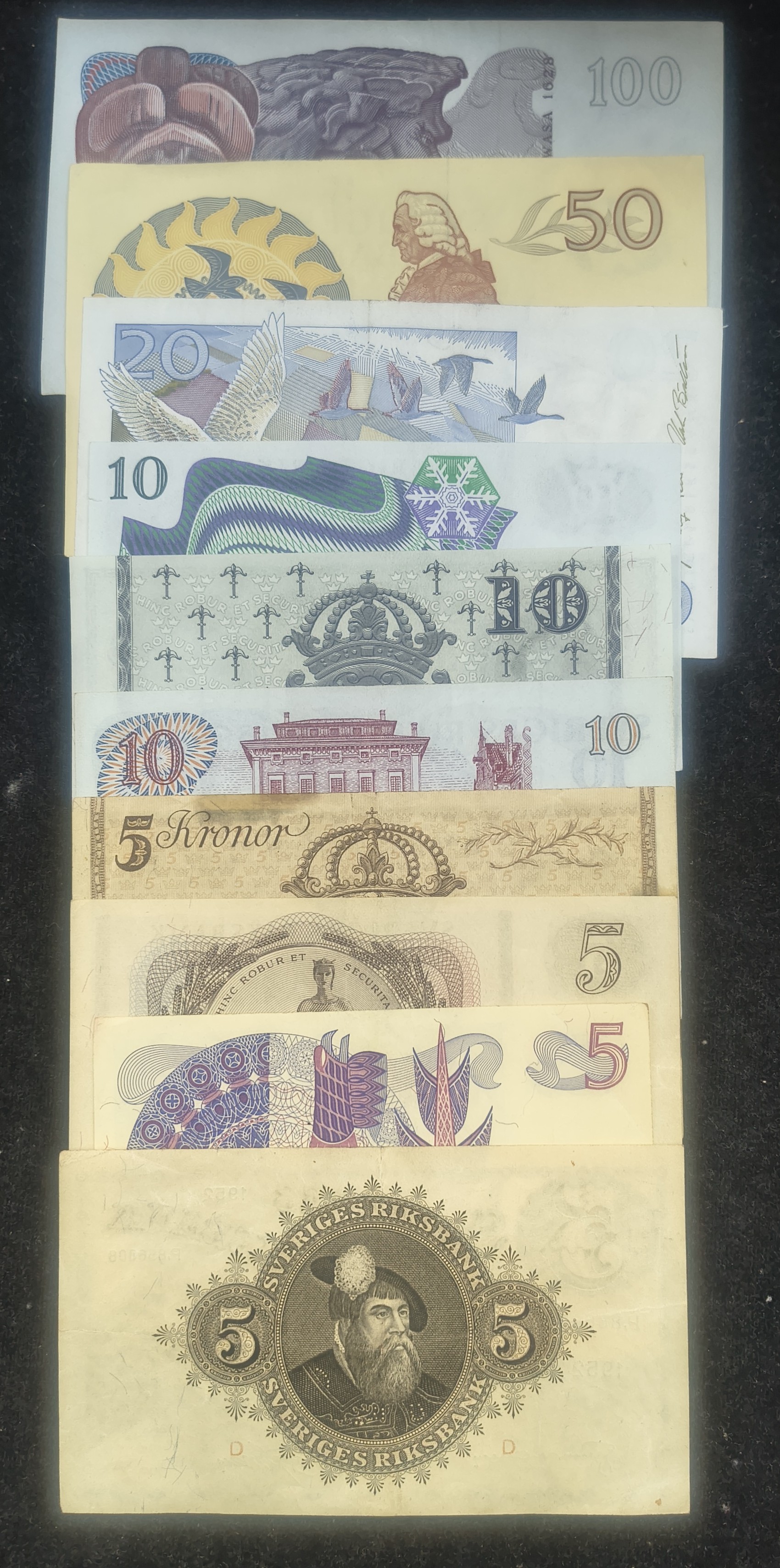 SWEDEN 10 DIFFERENT KRONOR OLD ISSUE RARE (10 NOTE SET) #2#