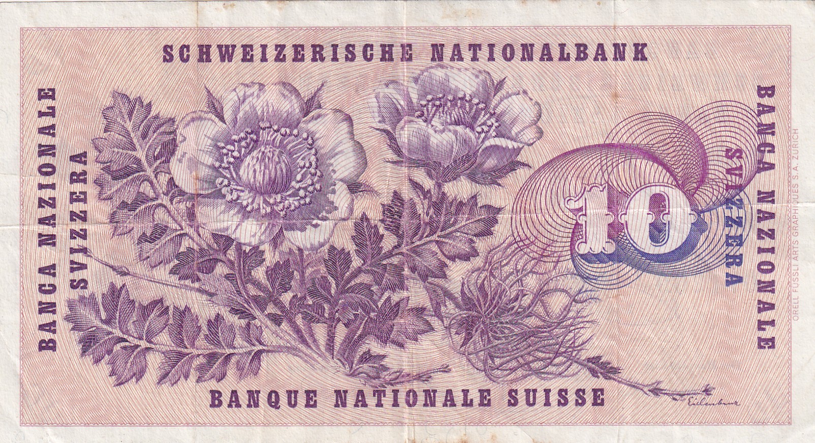 SWITZERLAND 10 FRANCS 5th SERIES OLD ISSUE RARE NOTE #B-2
