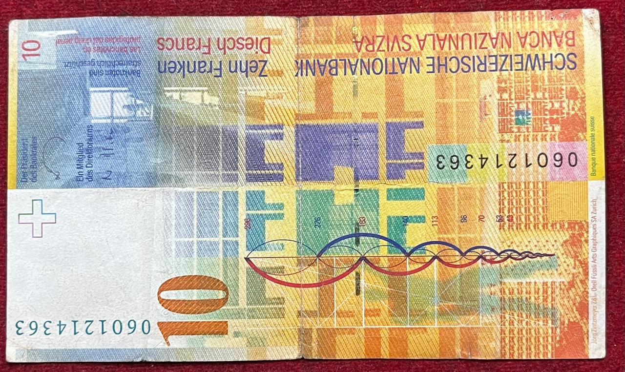 SWITZERLAND 10 FRANCS 8th SERIES BANK NOTE #B-2