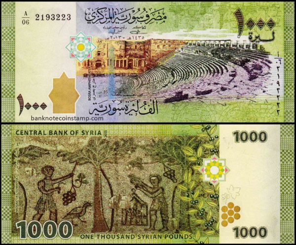 Syria 1000 Pounds Issue World Banknote Unc Unique and Rare