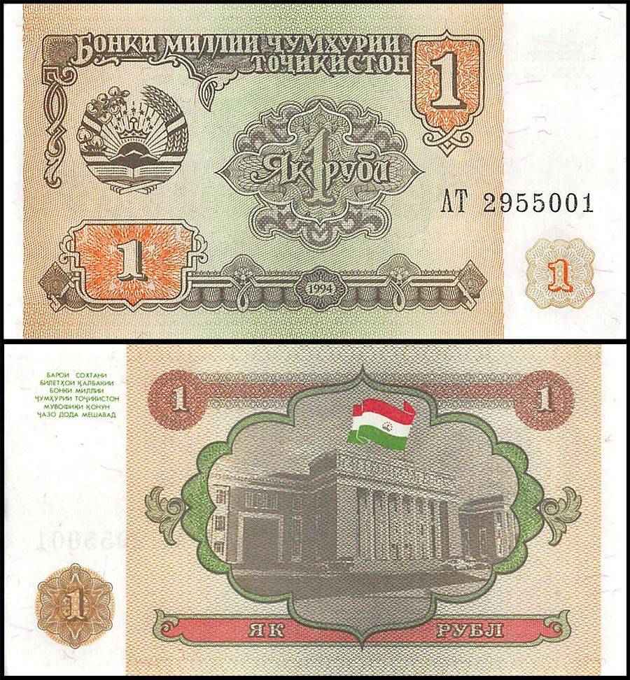 Tajikistan 1 Ruble Banknote 1994 P1 UNC Unique and Rare