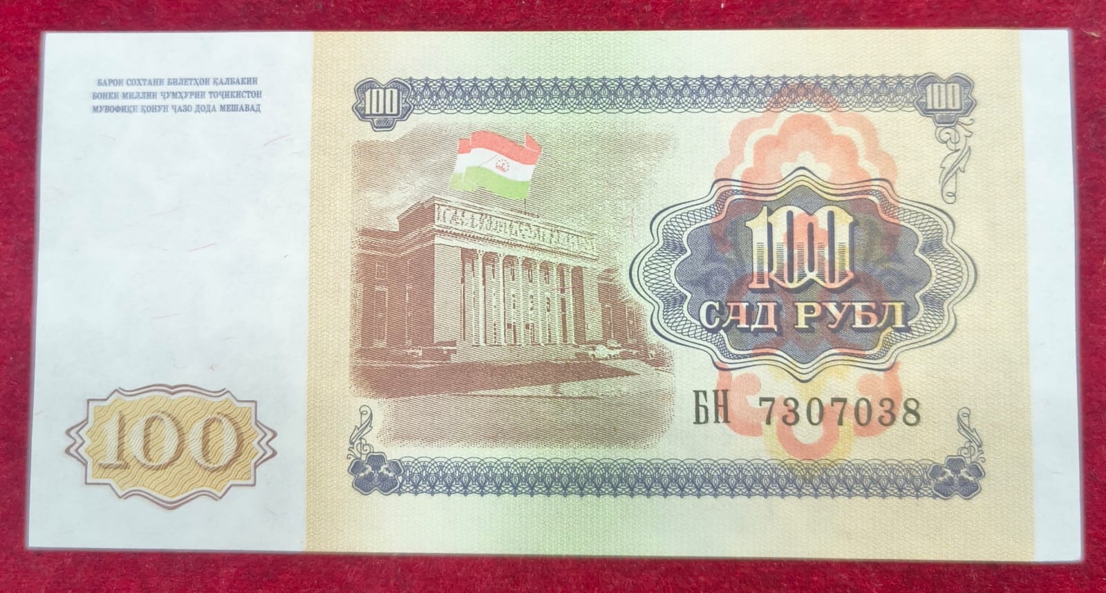 Tajikistan 100 Roubles GEM UNC RARE NOTE