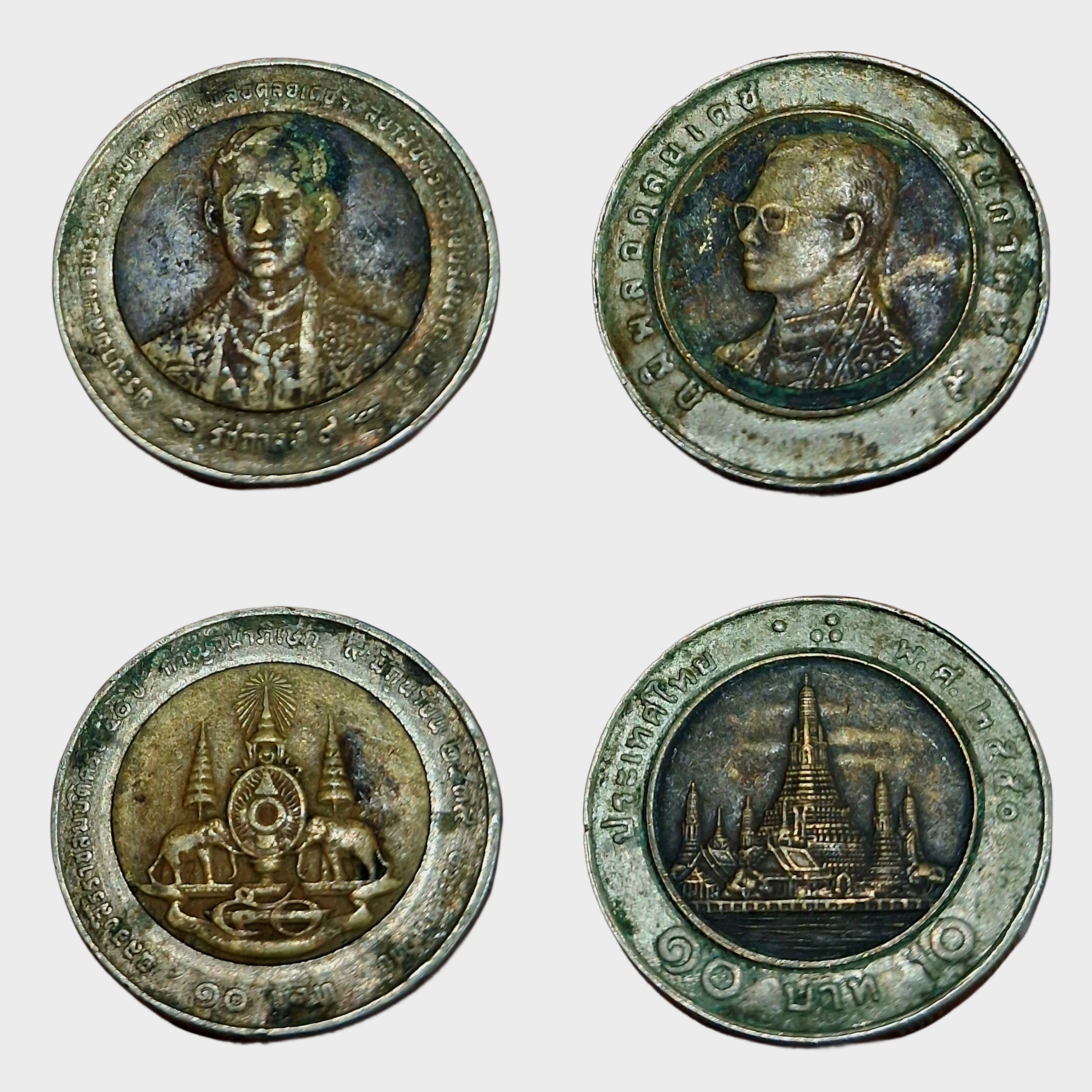 THAILAND Bi-Metal 10 BAHT King RAMA 2 Different Coins Set are in Used Conditions.