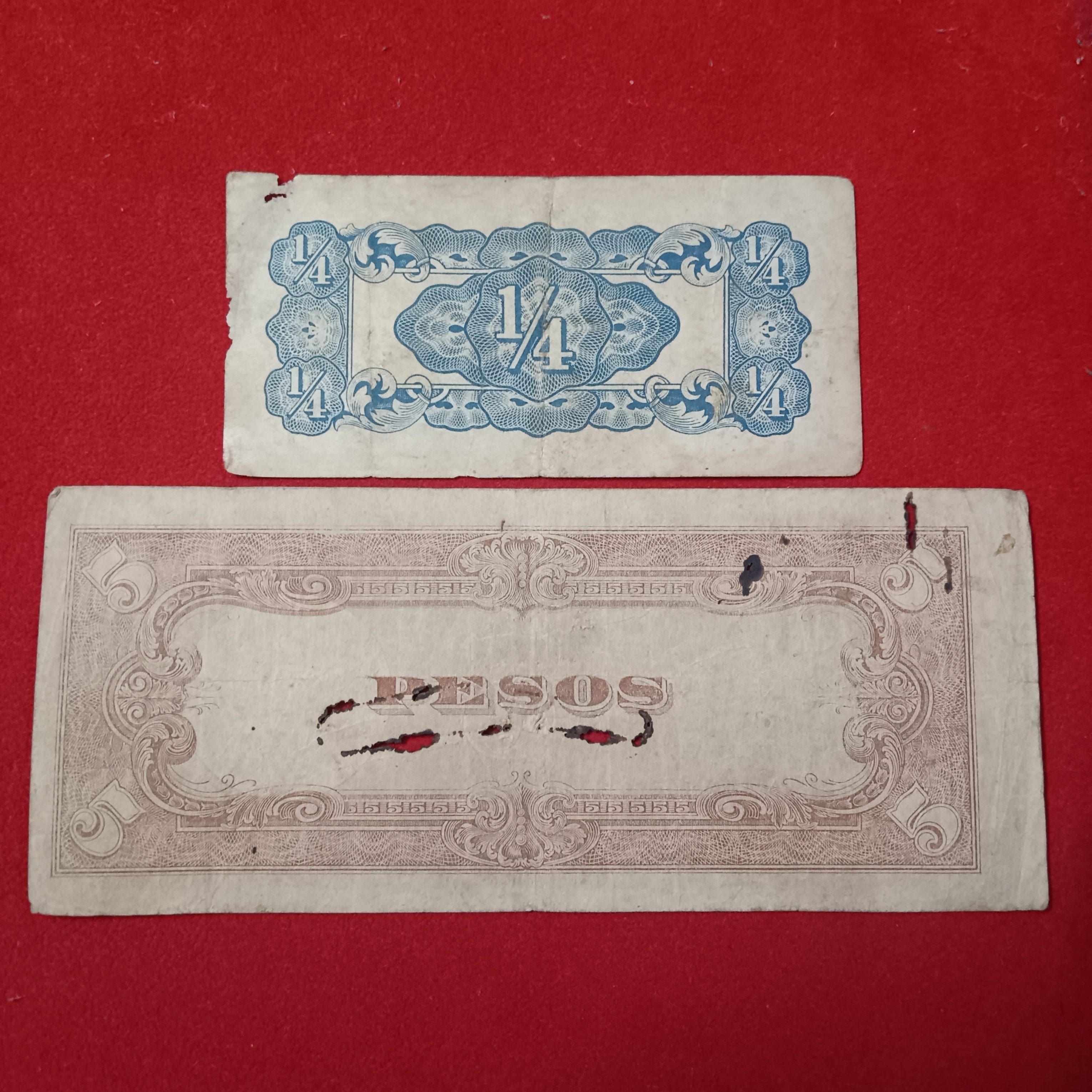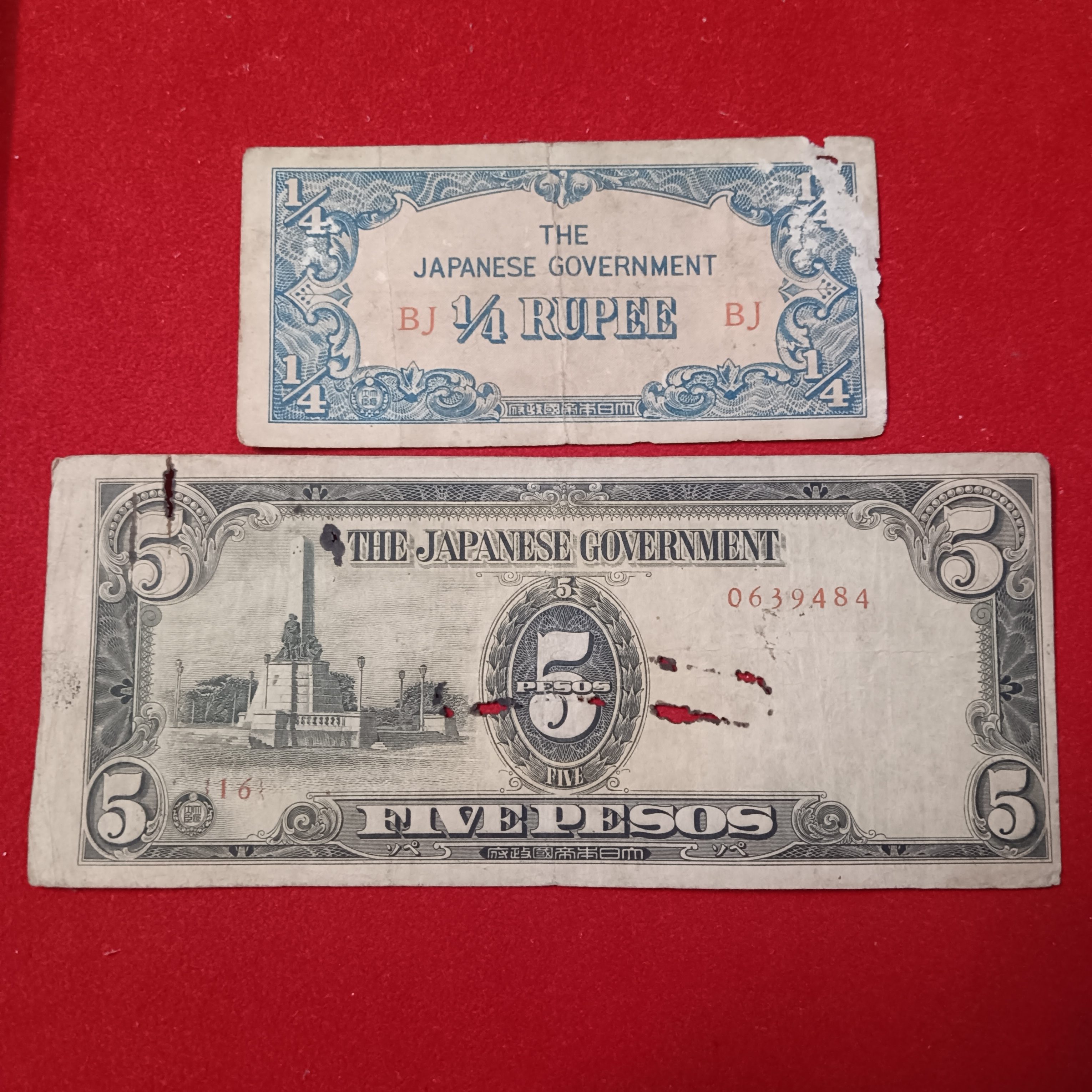 - The Japanese Government 1/4 Rupee or 5 Pesos Notes
