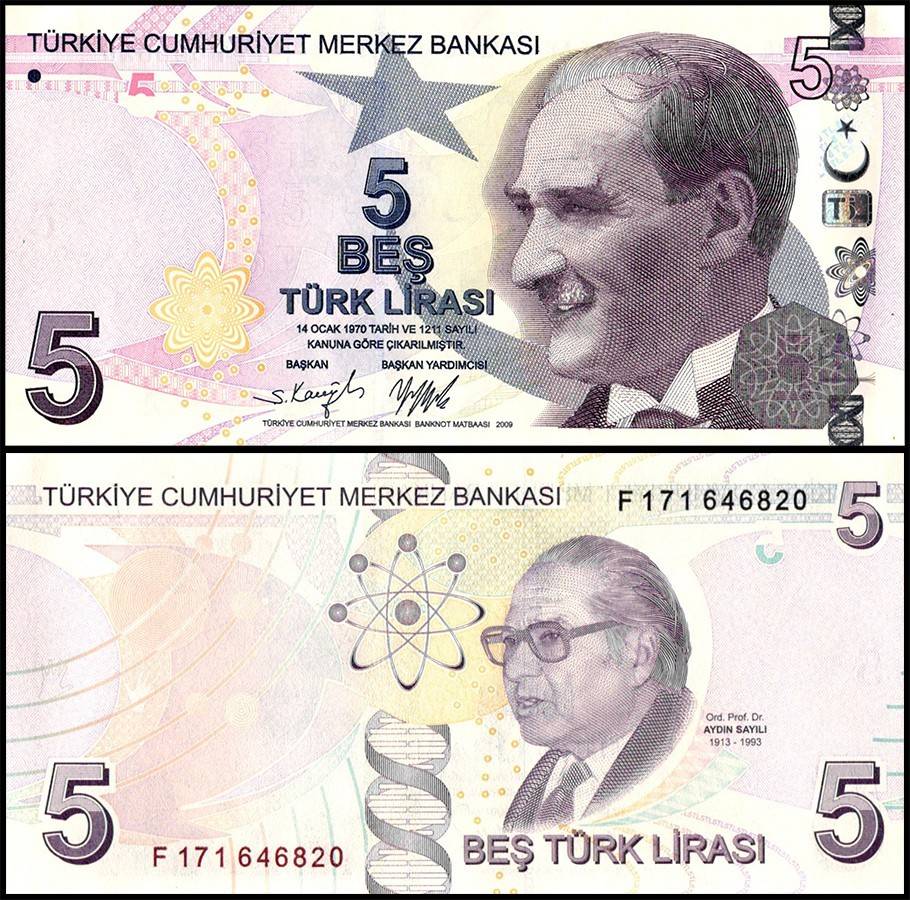 Turkey 5 Lira World Banknote L 1970 2009 P222f UNC Unique and Rare