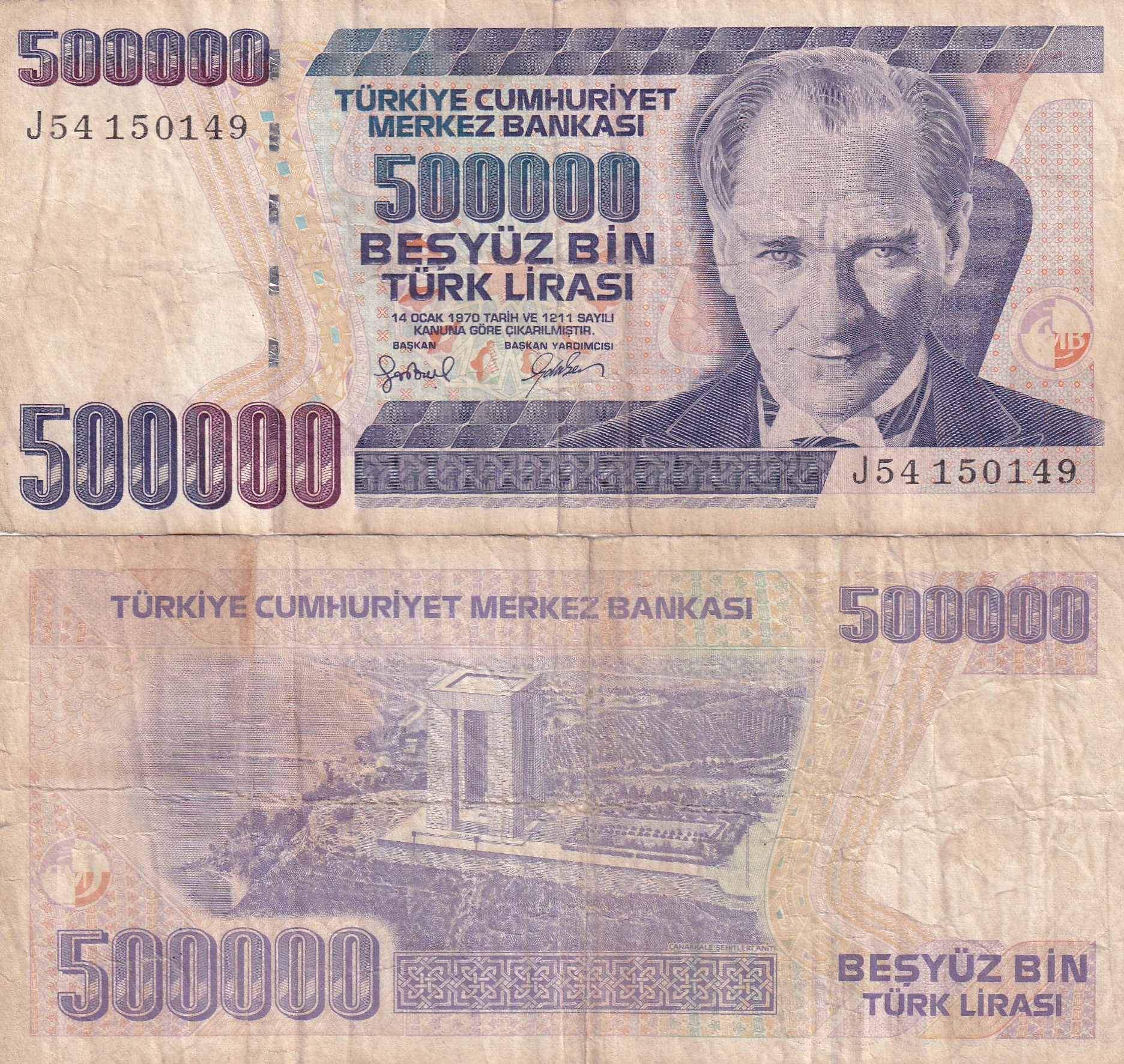 | Value | 500 000 Lira (500 000 TRL) |