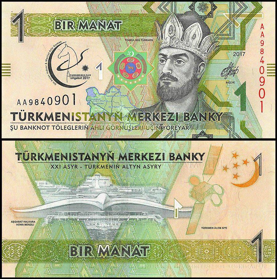 Turkmenistan 1 Manat World Banknote 2017 P36 UNC Commemorative 5th Asian Indoor and Martial Games Unique and Rare