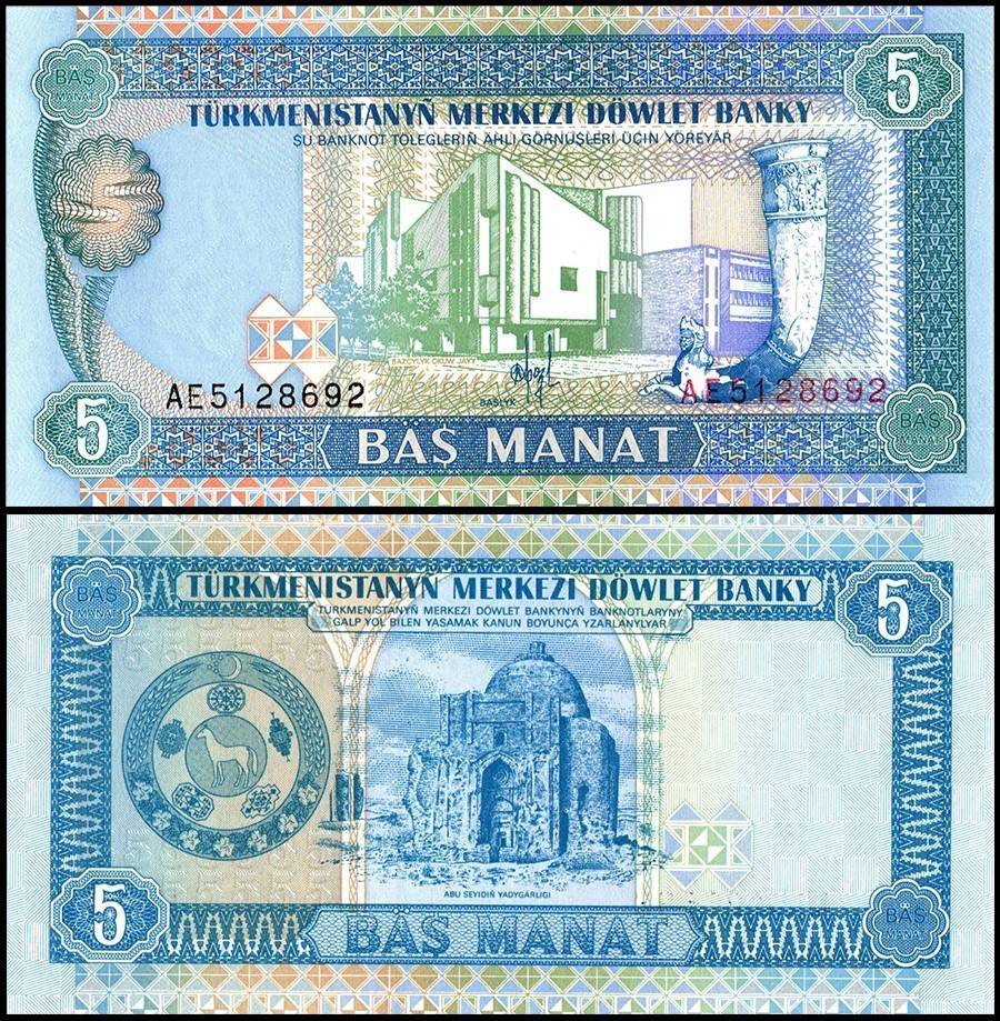 Turkmenistan 5 Manat Banknote 1993 ND P2 UNC Unique and Rare