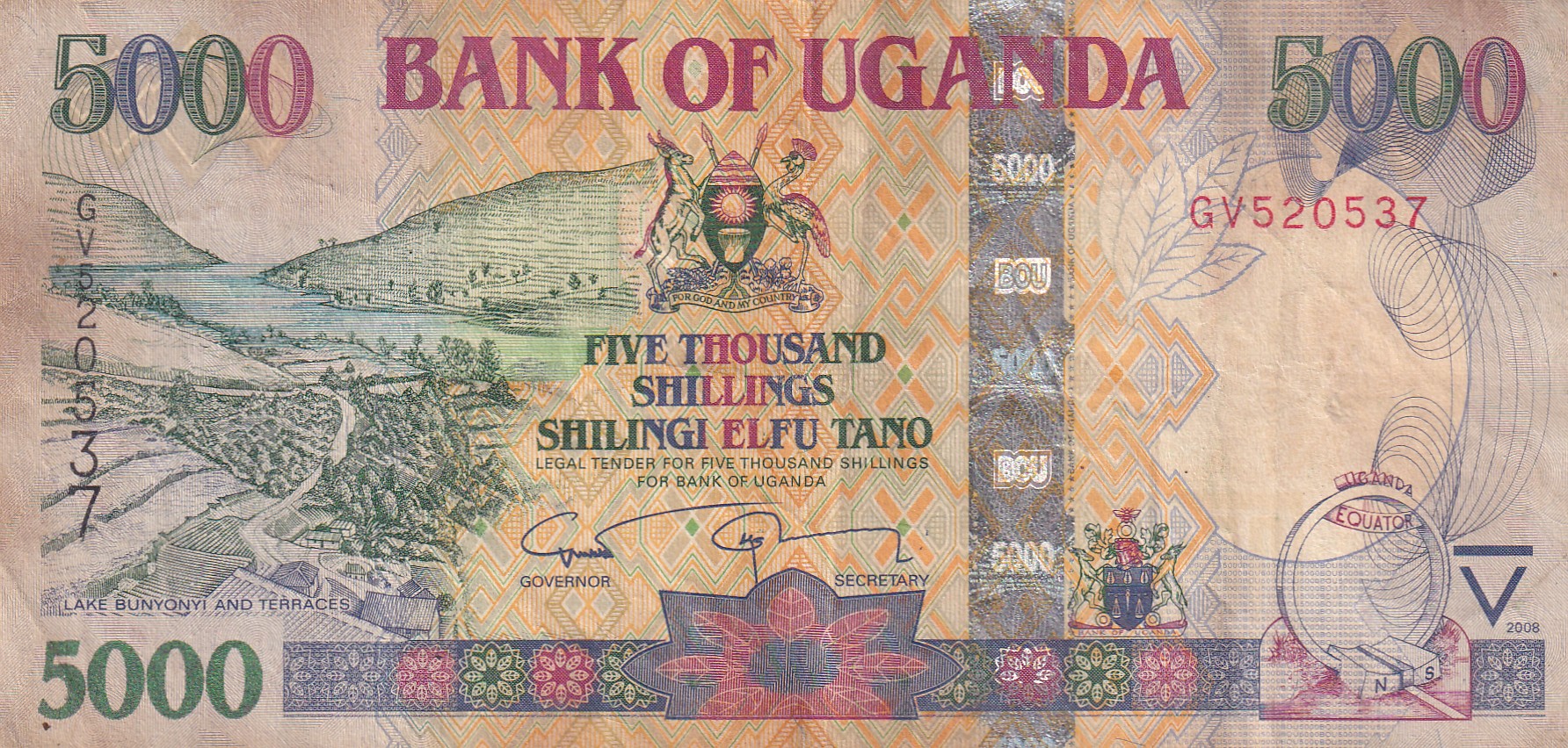 Uganda 5000 Shillings Rare Note #B2