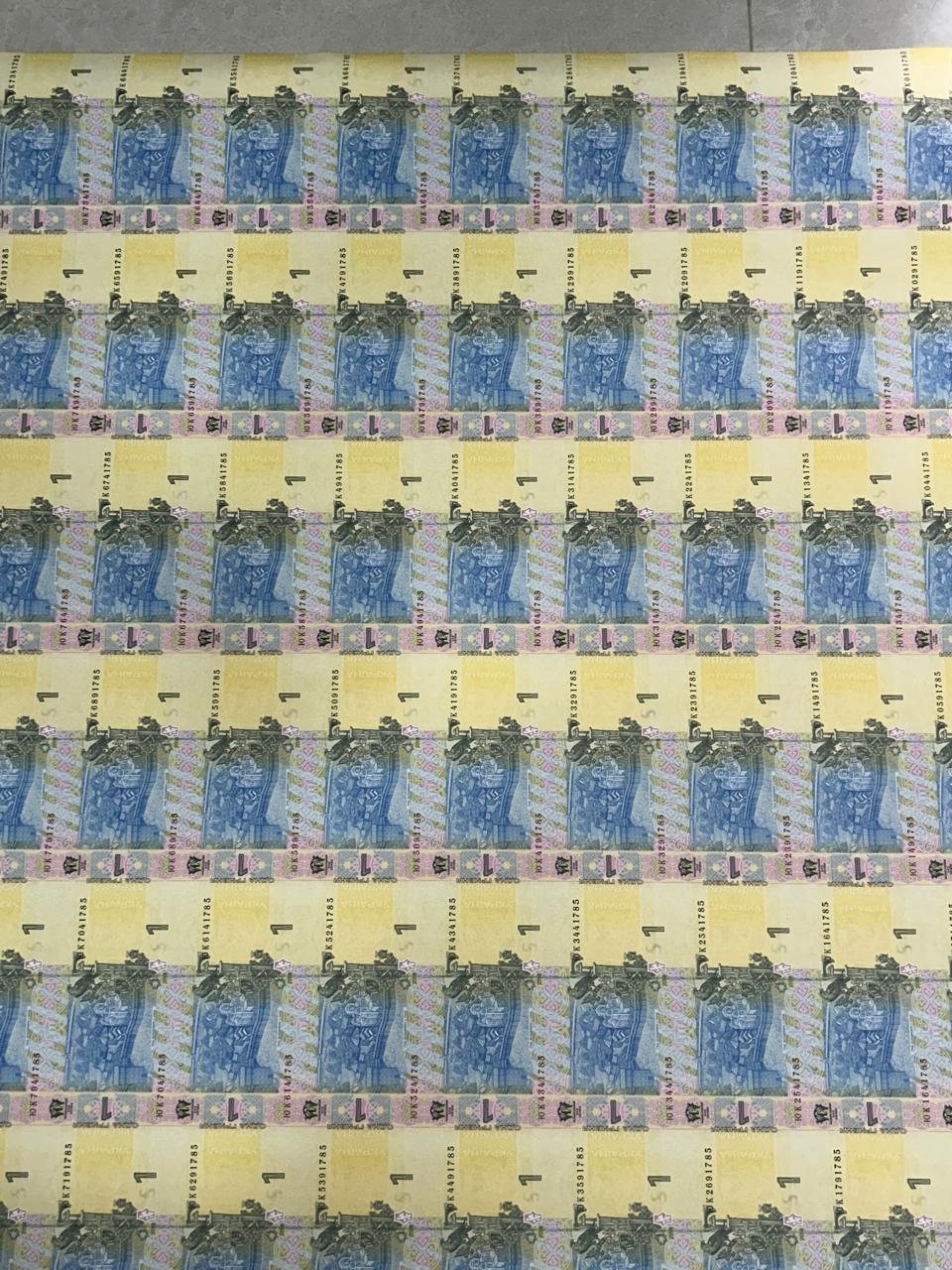 Ukraine 1 Hrivnya uncut 60 note sheet extremely rare uncut bank issue sheet