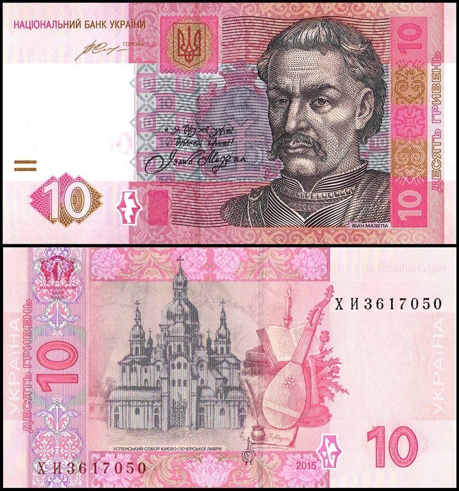 Ukraine 10 Hryven Banknote from 2015 with pick number P-119Ad is in uncirculated condition and features Cossack Hetman Ivan Mazepa.