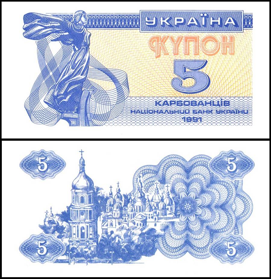 Ukraine 5 Karbovantsiv Banknote 1991 P83a2 UNC Unique and Rare