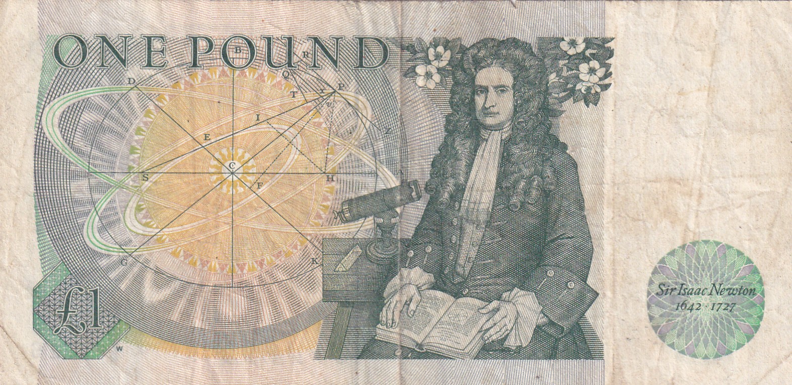 United Kingdom (England) 1 Pound (Elizabeth II Sir Isaac Newton 1642-1727) Rare Note #B-2