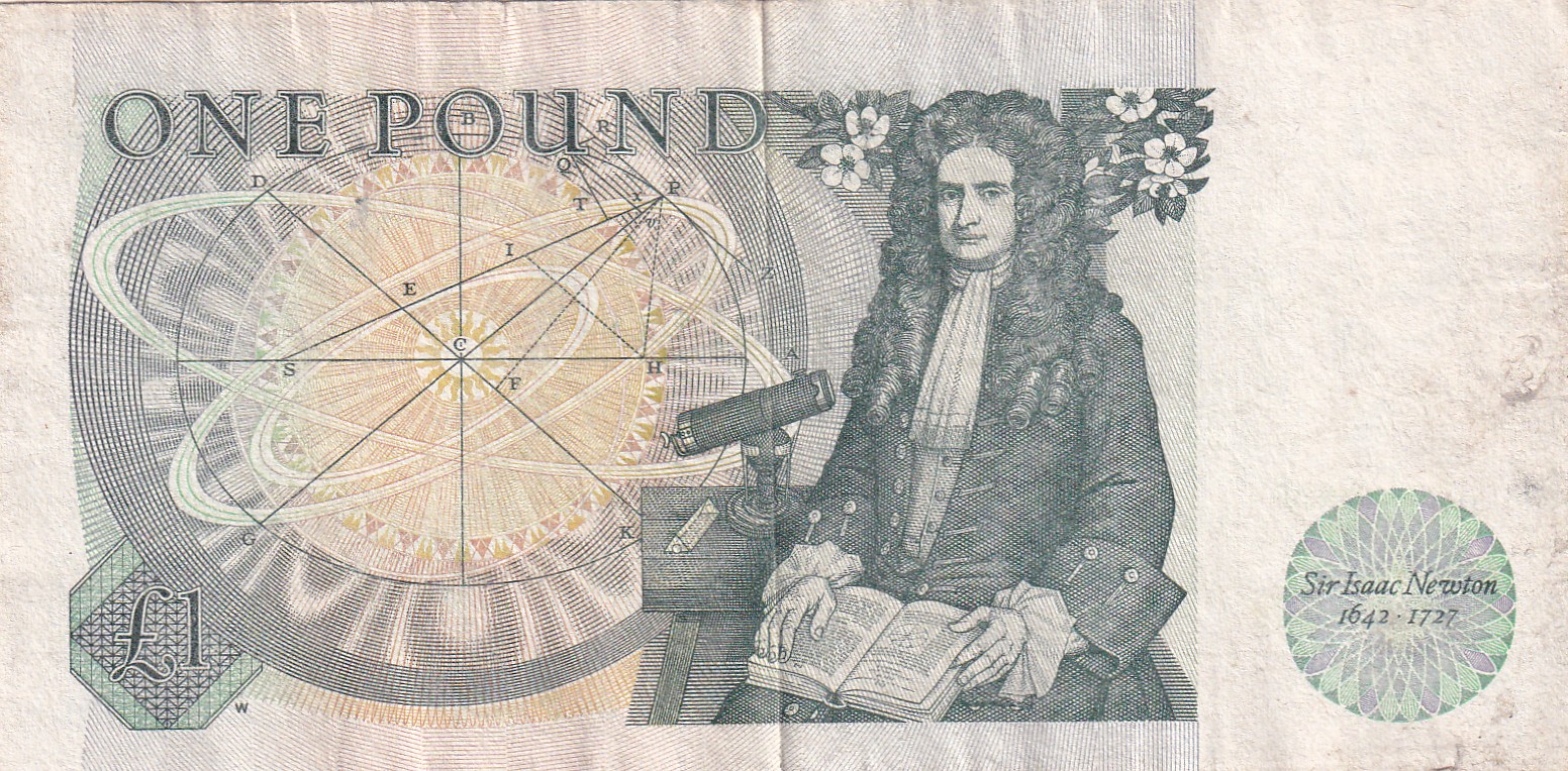 United Kingdom (England) 1 Pound (Elizabeth II Sir Isaac Newton 1642-1727) Rare Note #B-2