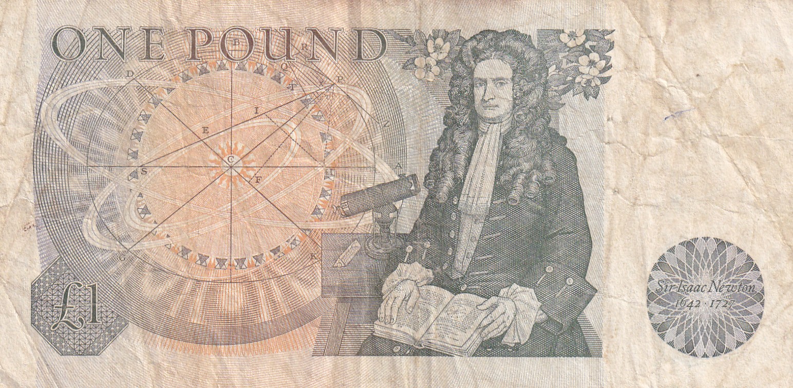 United Kingdom (England) 1 Pound (Elizabeth II Sir Isaac Newton 1642-1727) Rare Note #B-2